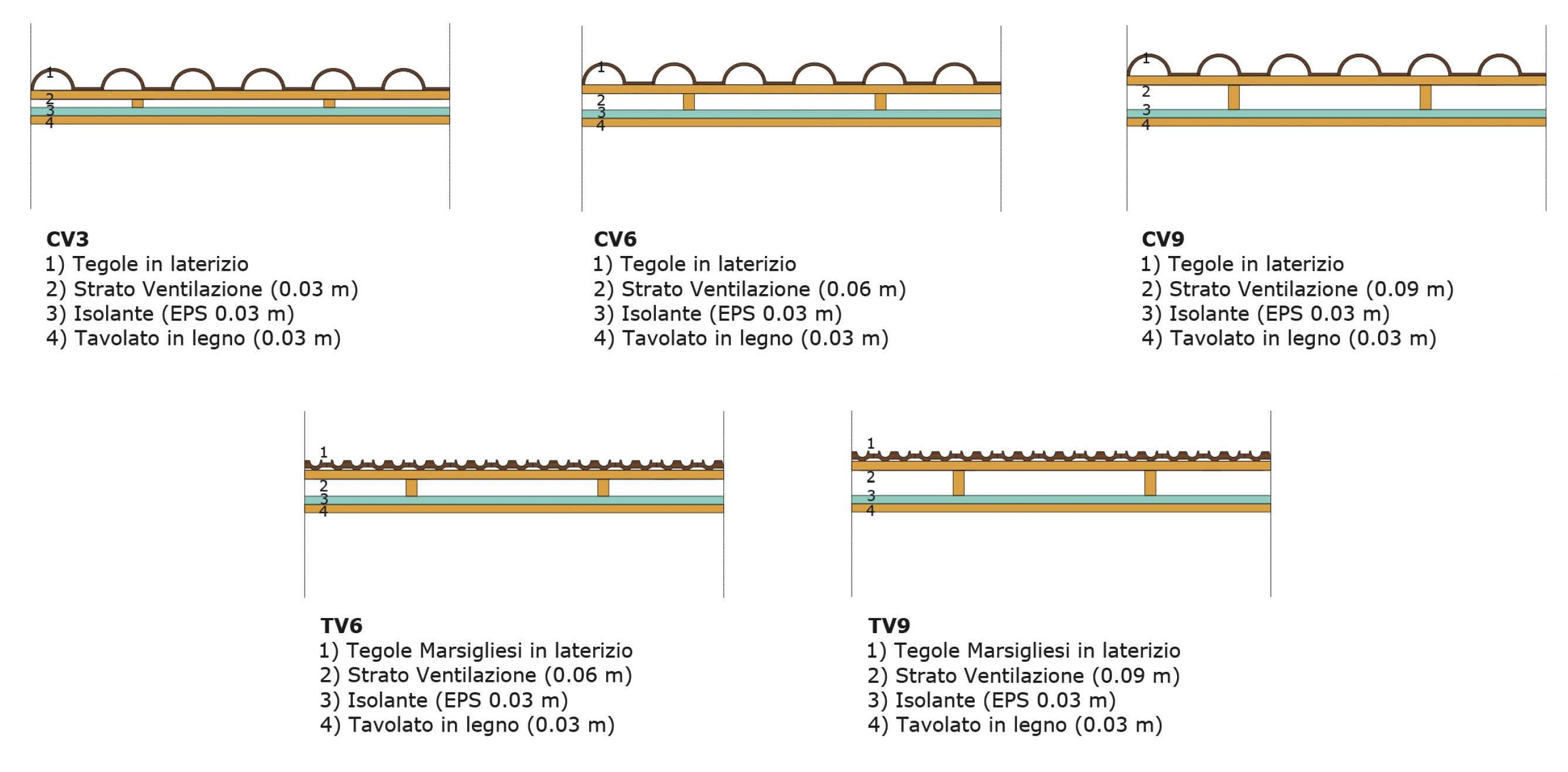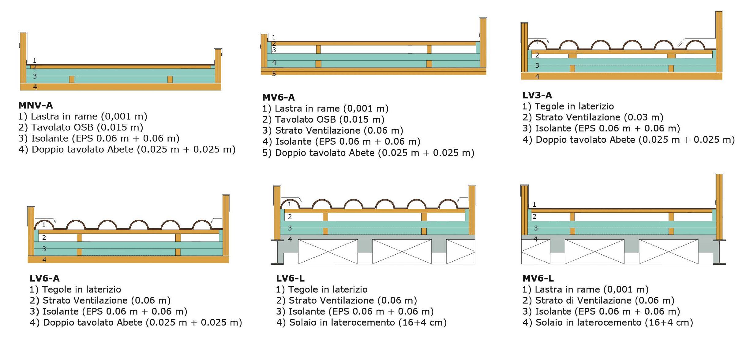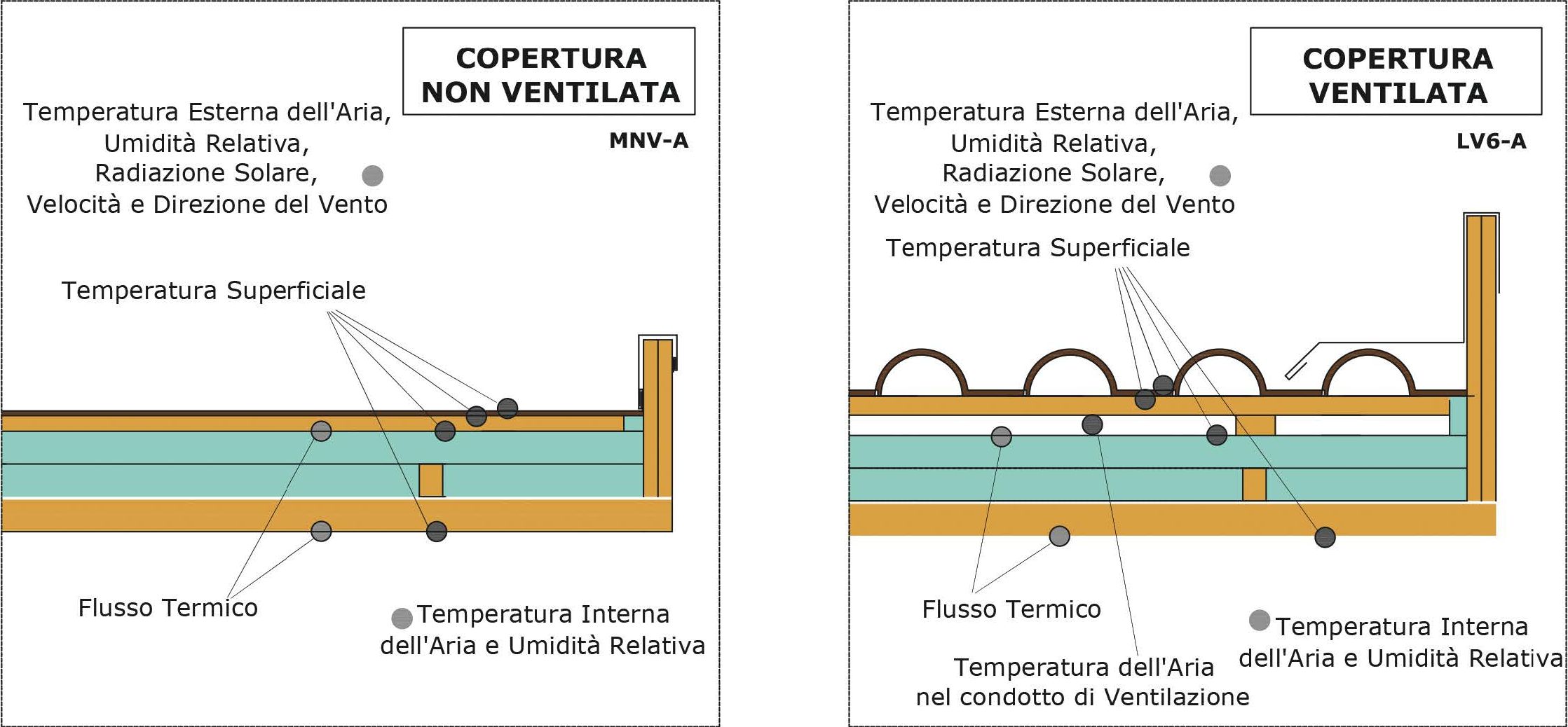 Si sono raccolti e analizzati i dati ottenuti con monitoraggi in ambiente esterno di 12 tipologie di coperture ventilate in scala reale, condotti dal gruppo di ricerca nell’ultimo decennio, installate su 3 casi studio: A (fig. 1), B (fig. 2), C (fig. 3).