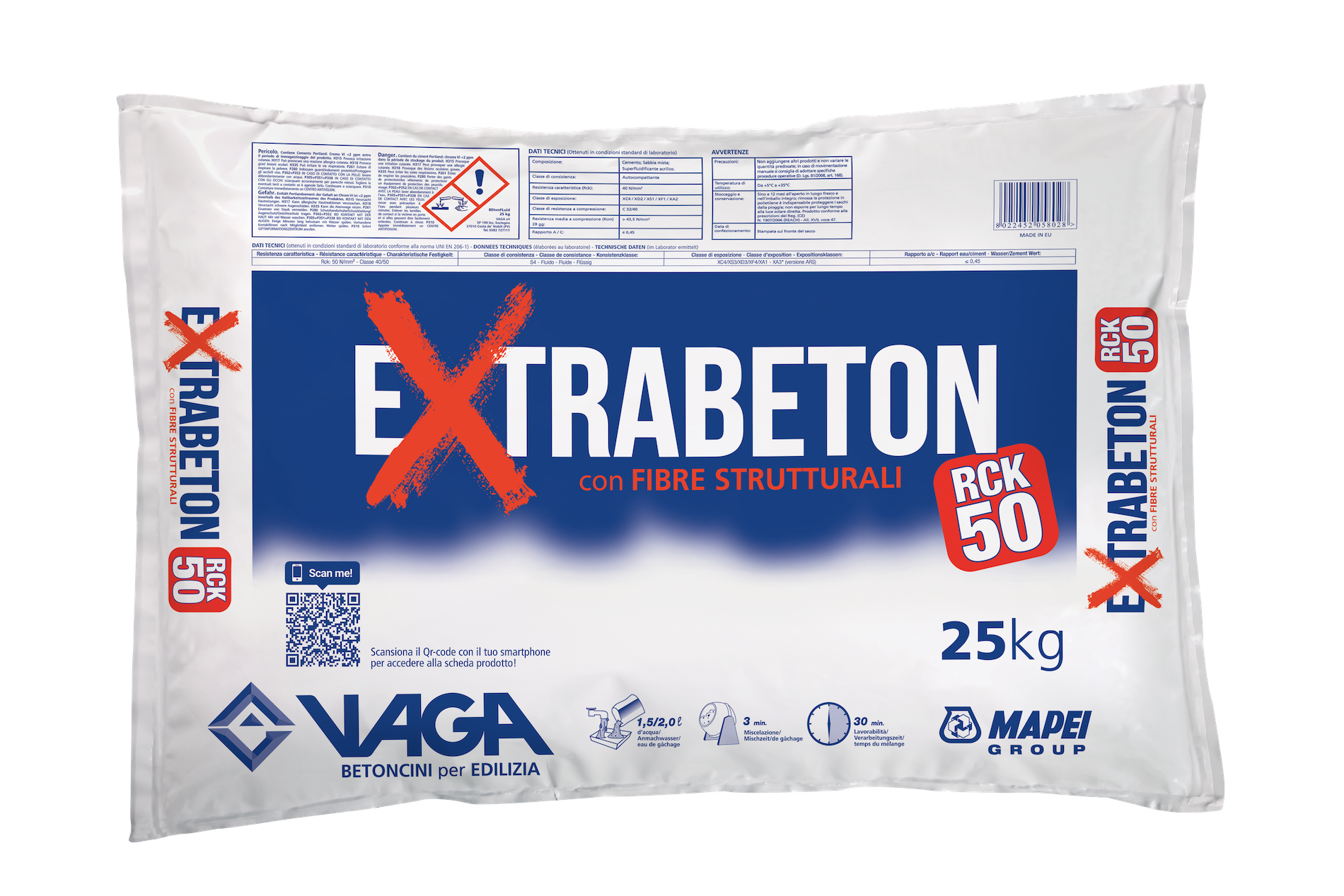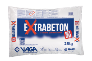 Prodotto da Vaga, Extrabeton Rck50 è un calcestruzzo, con fibre strutturali, predosato in sacchetti da 25 kg per la realizzazione di manufatti strutturali che richiedono elevate resistenze meccaniche e durabilità superiore ai normali calcestruzzi predosati reperibili sul mercato.