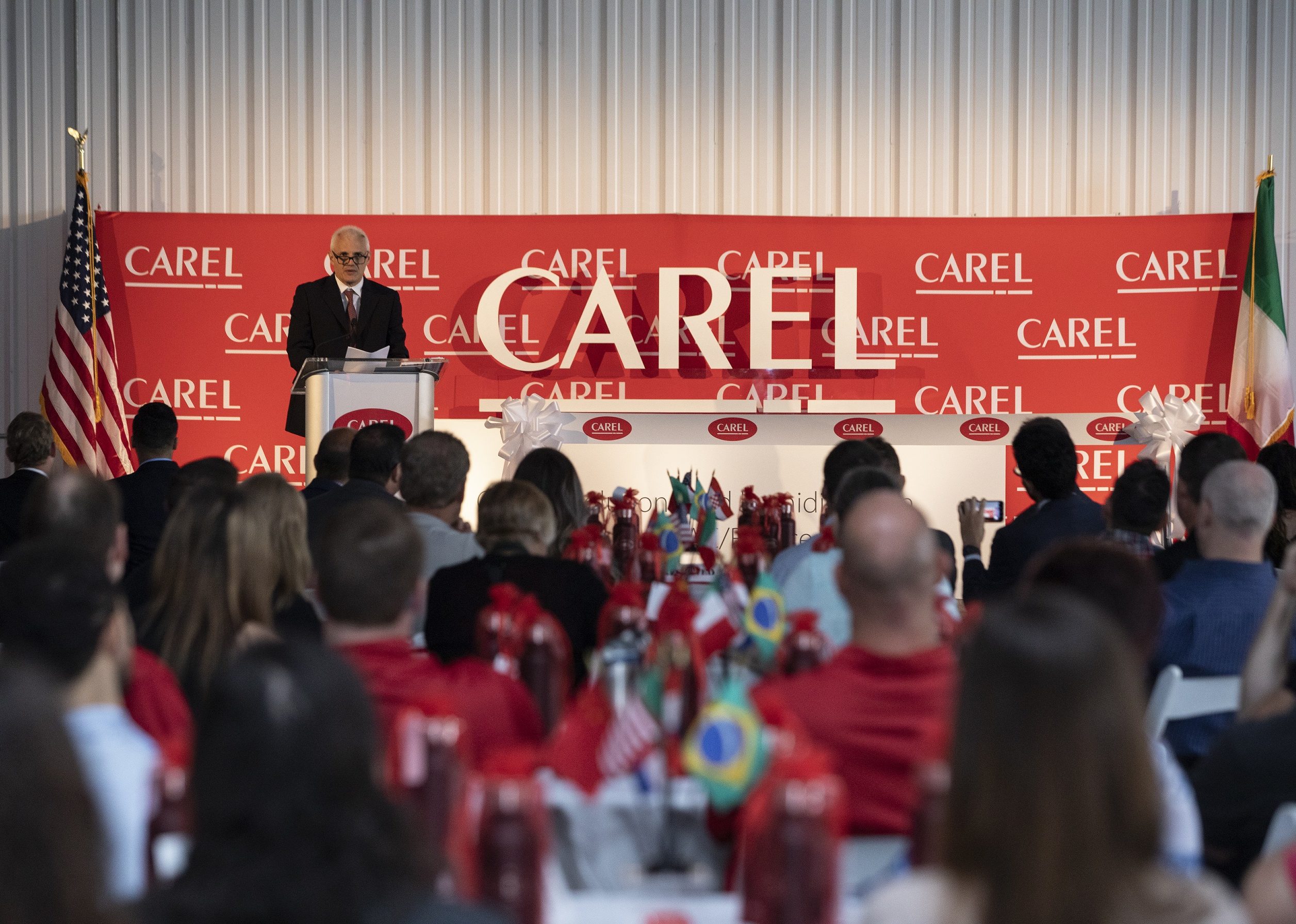 In aggiunta agli interventi delle autorità locali, hanno parlato, di fronte ad una platea composta dai 115 dipendenti di Carel Usa e da una cerchia ristretta di fornitori e clienti, Martino Manfrin, Ceo Carel Usa e Pietro Rossato, Chief Operations Officer Carel Group.