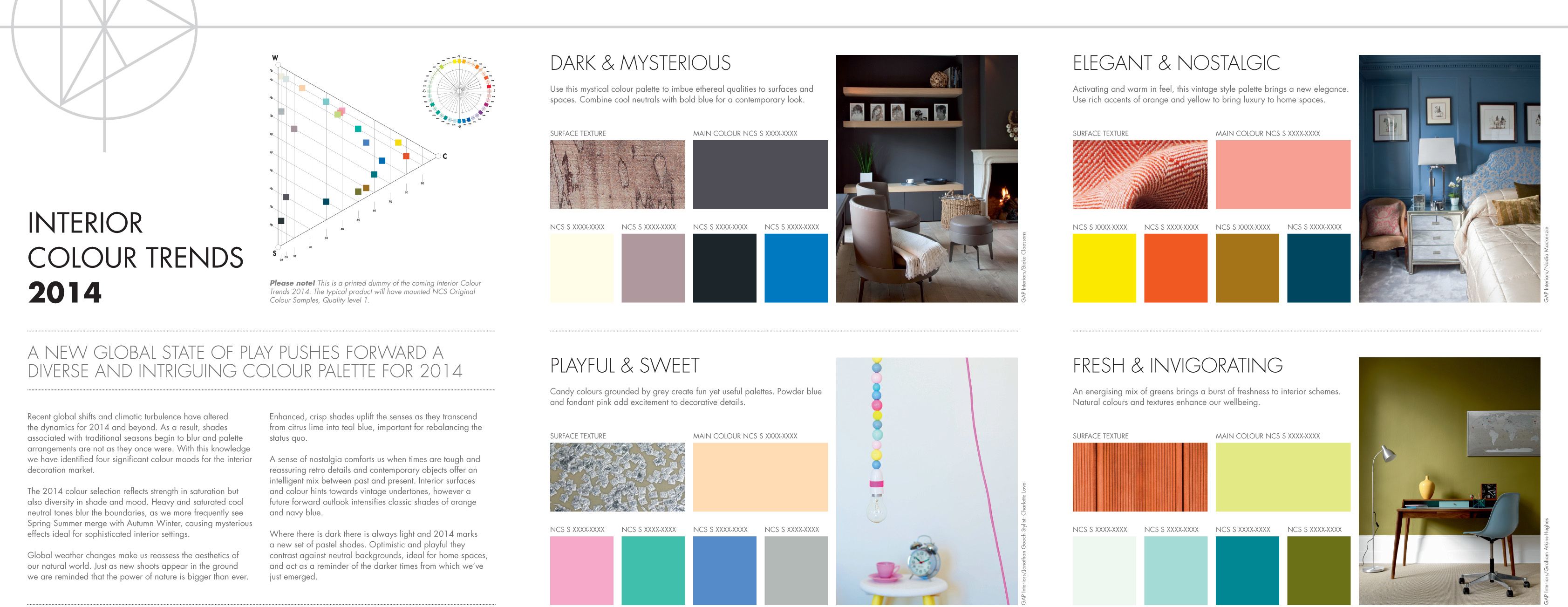 Interior Colour Trends 2014 include una selezione di 20 colori tratti da Mix Trends e notati in Ncs più una selezione di 4 texture.