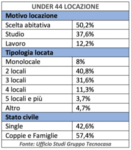 Tra chi sceglie la locazione sale la percentuale dei single portandosi al 42,6%.