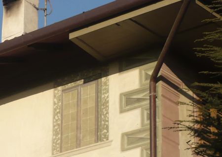 È tipico del secolo XVIII- XIX l’intonaco di calce e sabbia, steso in spessori variabili tra i 5 e i 15 mm, rifinito a frattazzo (tavoletta rettangolare di legno con maniglia) e dipinto a fresco, a tempera ed a secco, spesso con motivi decorativi ripresi dall’architettura veneto-bizantina, gotica e rinascimentale, in conseguenza del diffondersi dell’arte eclettica (cioè della tendenza ad ispirarsi a diverse fonti artistiche e culturali) a opera dei principali architetti del tempo.