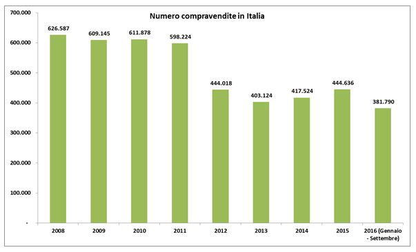 Nei primi nove mesi del 2016 le compravendite residenziali in Italia hanno registrato un segno positivo (+20,4%) e questo grazie alla presenza dei prezzi più bassi e alla ripresa del mercato dei mutui.