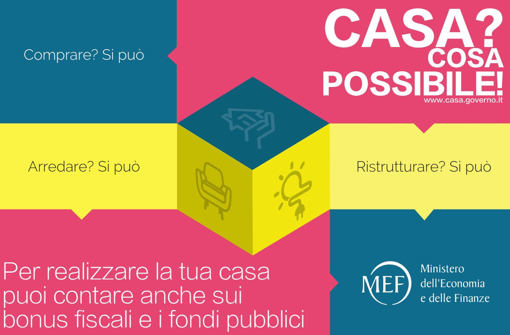 Si tratta di una serie di misure messe in campo dal Governo per sostenere gli italiani in tutte le attività collegate agli immobili: acquisto di una abitazione e accesso al credito, ristrutturazione, riqualificazione, arredamento, affitto. Gli strumenti previsti riguardano agevolazioni e bonus fiscali, facilitazioni, finanziamenti e nuovi regimi di tassazione e interessano, in particolare, l’acquisto della prima casa e i mutui, il leasing immobiliare abitativo, l’acquisto dei mobili per le giovani coppie e l’efficientamento energetico, il Fondo di solidarietà.