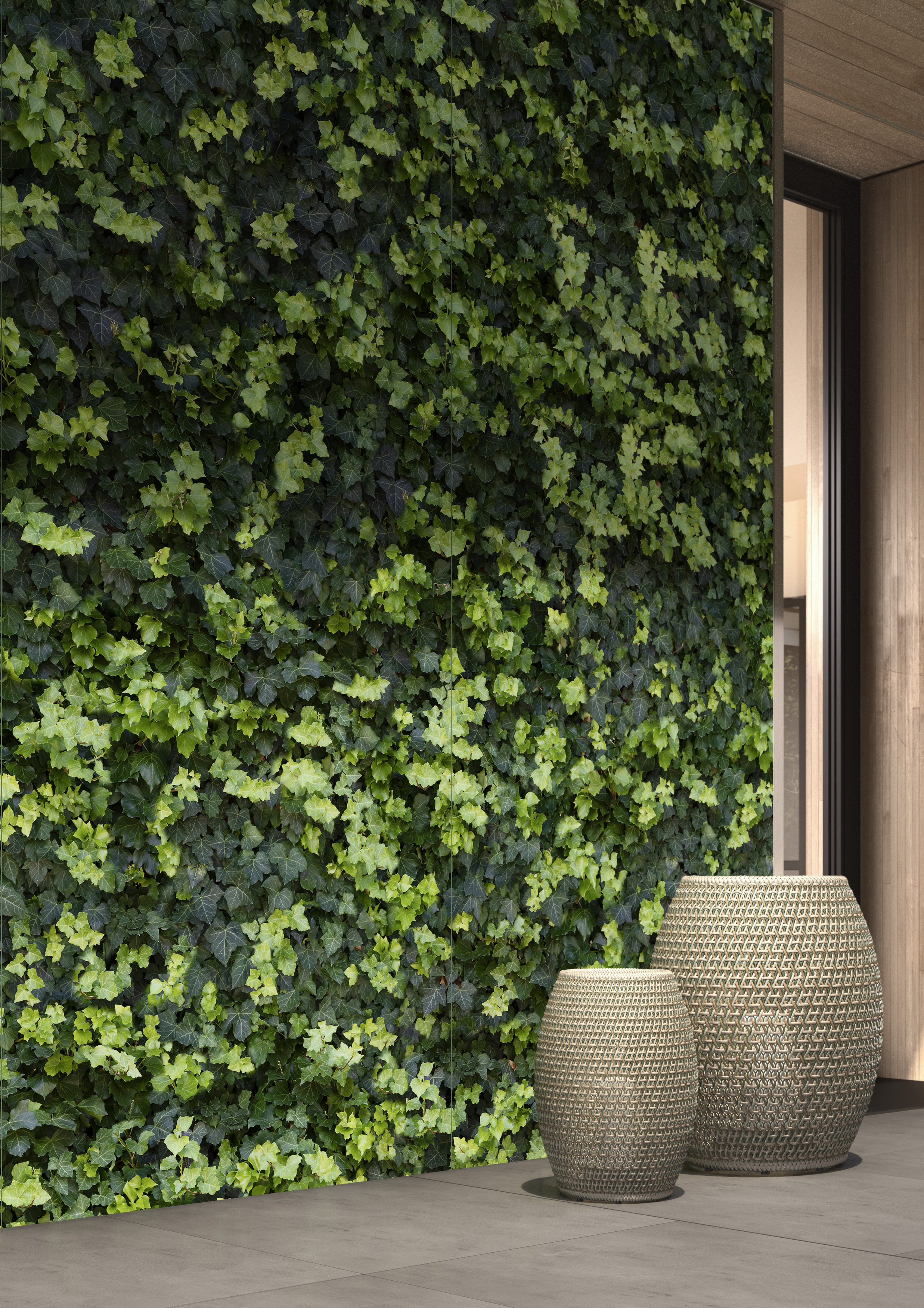 Le grandi lastre grazie alla tecnologia Bios Self Cleaning®, nata dalla collaborazione tra il Centro Ricerche Casalgrande Padana e Toto, specializzato nel settore dei prodotti sanitari e pioniere nella tecnologia fotocatalica a marchio Hydrotec., in presenza di luce solare sono in grado di abbattere gli inquinanti presenti nell’aria e decomporre lo sporco che si deposita sulla superficie delle piastrelle, in modo che venga rimosso dall’acqua piovana, grazie alla super-idrofilia della superficie ceramica. Una tecnologia che si ispira chiaramente a quanto accade in natura e garantisce un’aria più pulita, permettendo di avere visivamente pareti verticali a verde senza problemi di manutenzione.