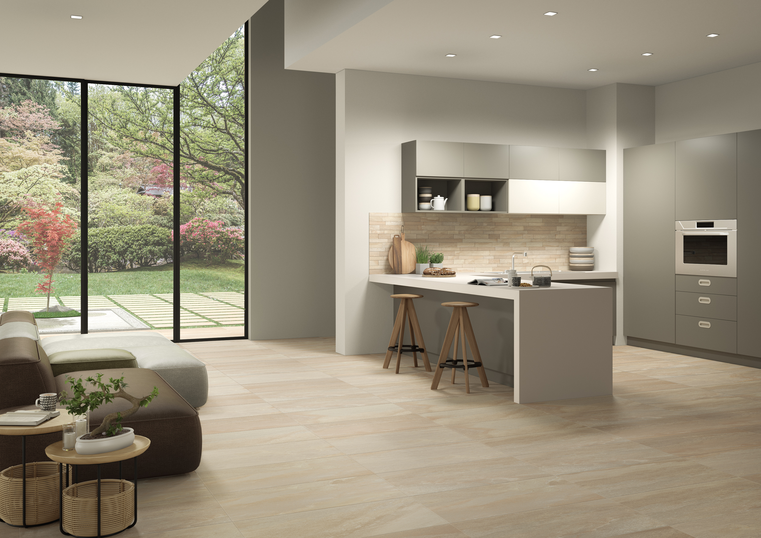 Se si desidera dare vita a un ambiente essenziale e in stile minimalista, rivestire il pavimento con lastre di grande formato (a par re da 60×60 cm), sarà perfetto, anche nel caso in cui lo spazio non fosse grandissimo.