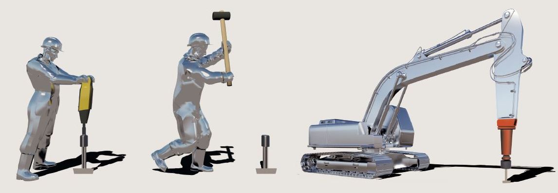 Il sistema è dotato di accessori specifici, detti battibase, per la posa manuale (mazza) o meccanica (martello elettropneumatico ed escavatore) che permettono l’installazione perfetta su qualsiasi tipo di terreno.
