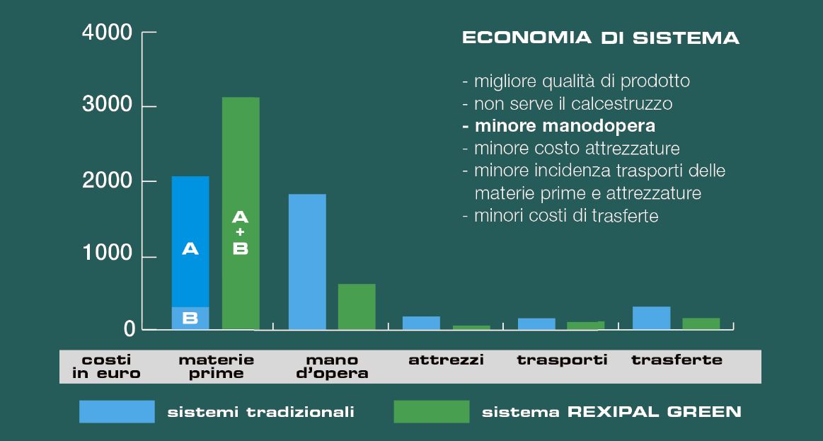 Confrontando i costi di installazione di una realizzazione tipo, è evidente che a fronte di un discreto risparmio complessivo la qualità del prodotto aumenta.