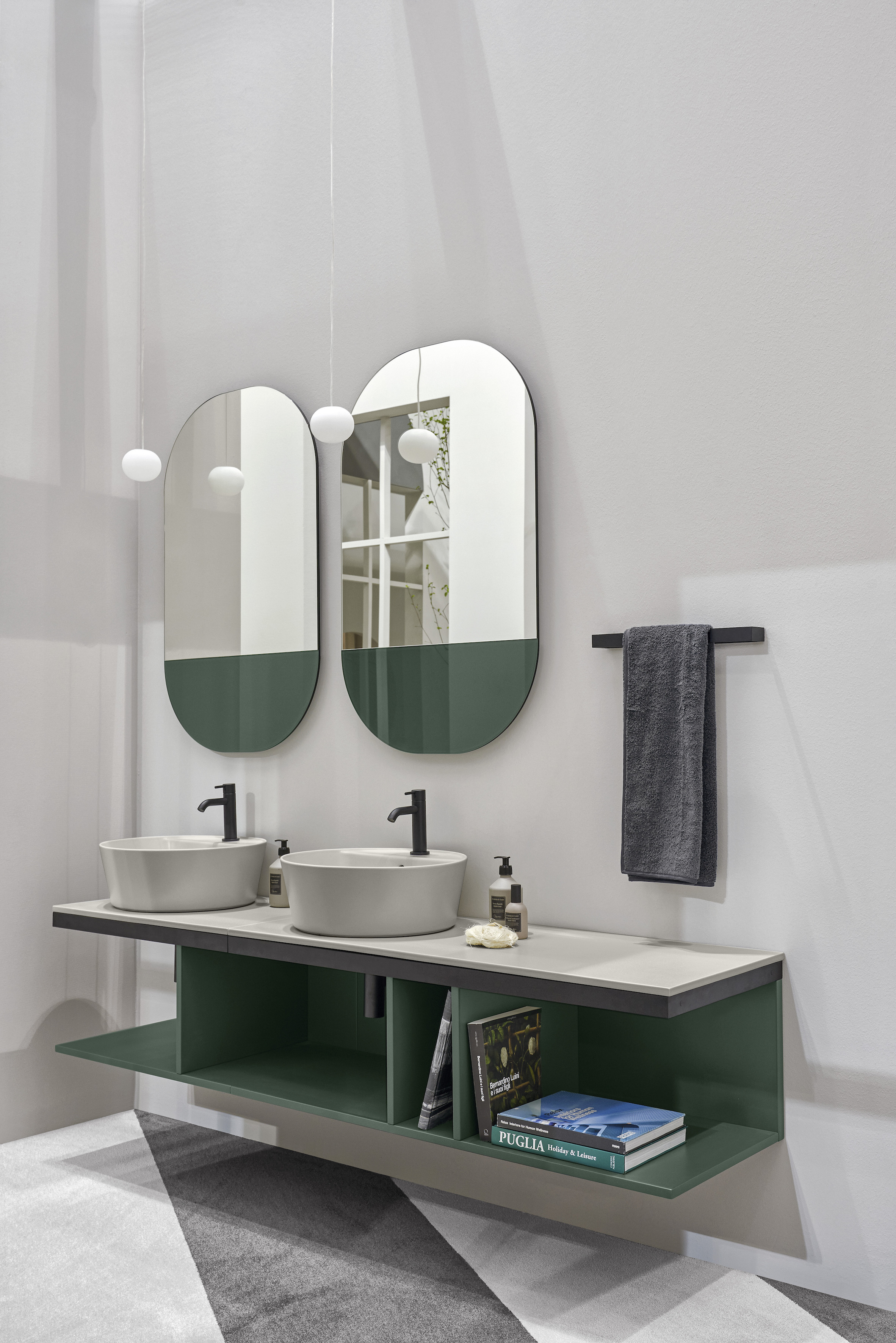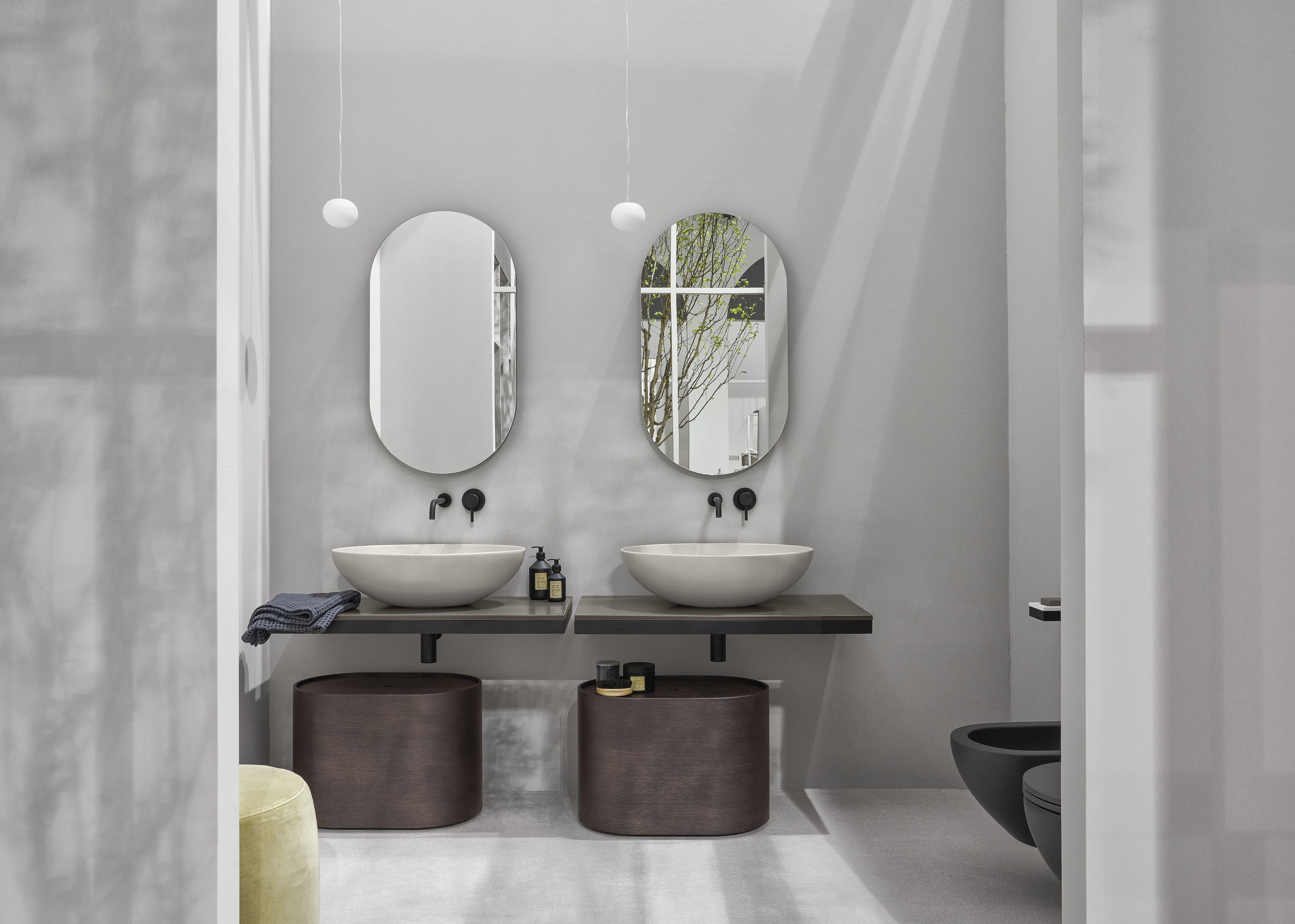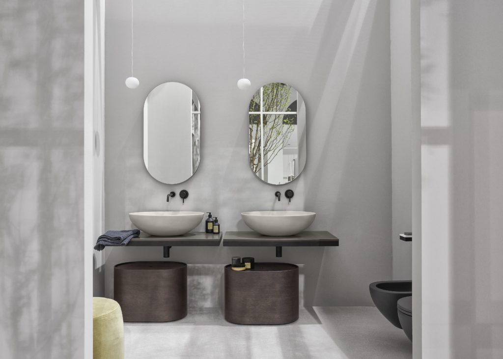 Multiplo è disponibile con ben 18 lavabi compatibili e installabili su piani in ceramica – in 6 formati (40×29, 50×48, 70×48, 90×48 e 120×48 cm) e nelle 16 nuance e tattilità ispirate alla natura della palette cromatica “Terre di Cielo” – e contenitori e vani portaoggetti in legno laccato, declinabili in 8 delicate tonalità della gamma: Talco, Pomice, Brina, Arenaria, Avena, Cemento, Basalto e Muschio.