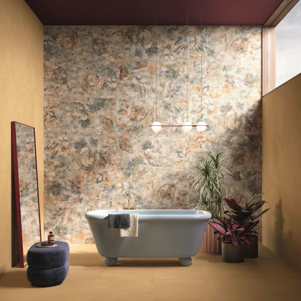 Alle quattro tonalità già presenti (grigio, greige, taupe e bianco), si aggiungono altre nuove varianti di colore: la tonalità Canyon a metà tra terra e cipria; il potente Sun e Nightfall, un colore intenso e riflessivo. Ad accompagnare queste tre colorazioni troviamo il mosaico Blind: si tratta di un pattern pensato per rivestire zone back splash, testate del letto, docce e piatti doccia e, se posato verticalmente, anche pareti. Timeline si arricchisce del nuovo decoro Botanical, espressione della natura in movimento. Questa decorazione si unisce al Seventy-line, la cui trama richiama un mix tra un tappeto e un wallpaper.