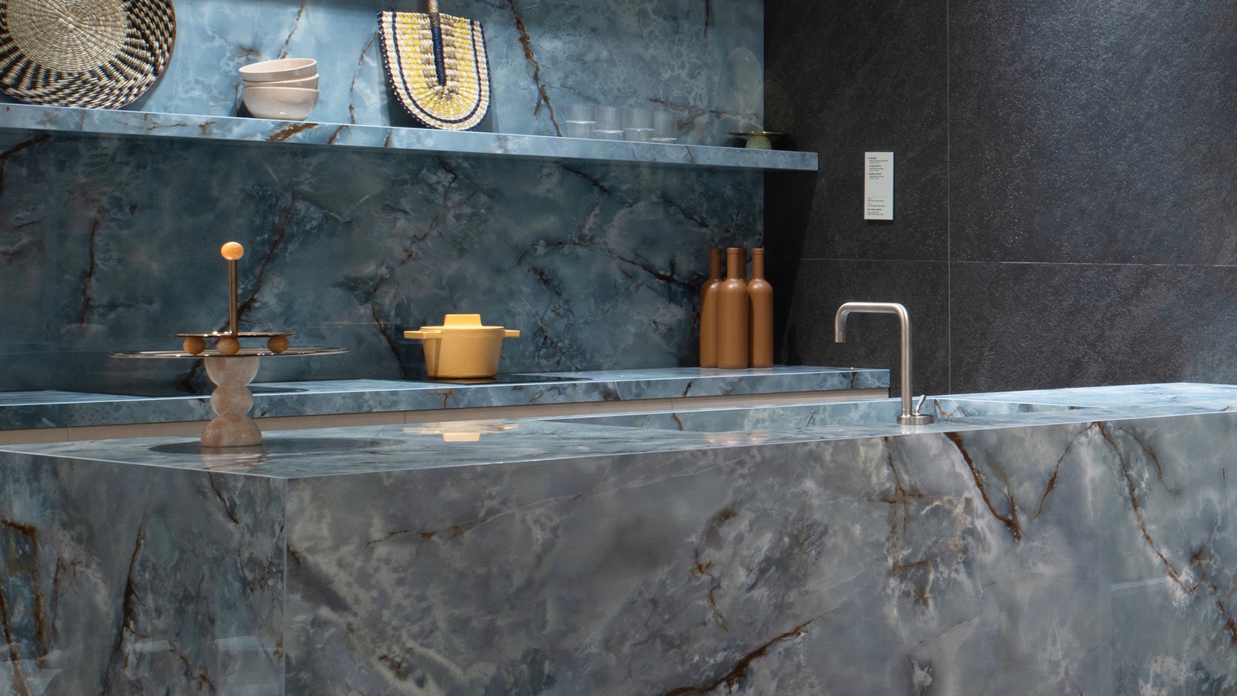 Paradise è un’armonia di sfumature di colori dolci e dinamici, un elegante arcobaleno di sfumature. Con Amazzonite la texture proposta si presenta con una fitta trama adagiata su un fondo dalla tonalità verde, con presenza di grafica di colore bianco, viola, marrone. Una superficie dal carattere sofisticato, elegante ma anche accogliente e familiare. Infine Onice Azzurro è caratterizzato da una sfumatura intensa, inedita e di rara bellezza, la cui profondità e ricchezza grafica vengono interrotte da vene di color ruggine.