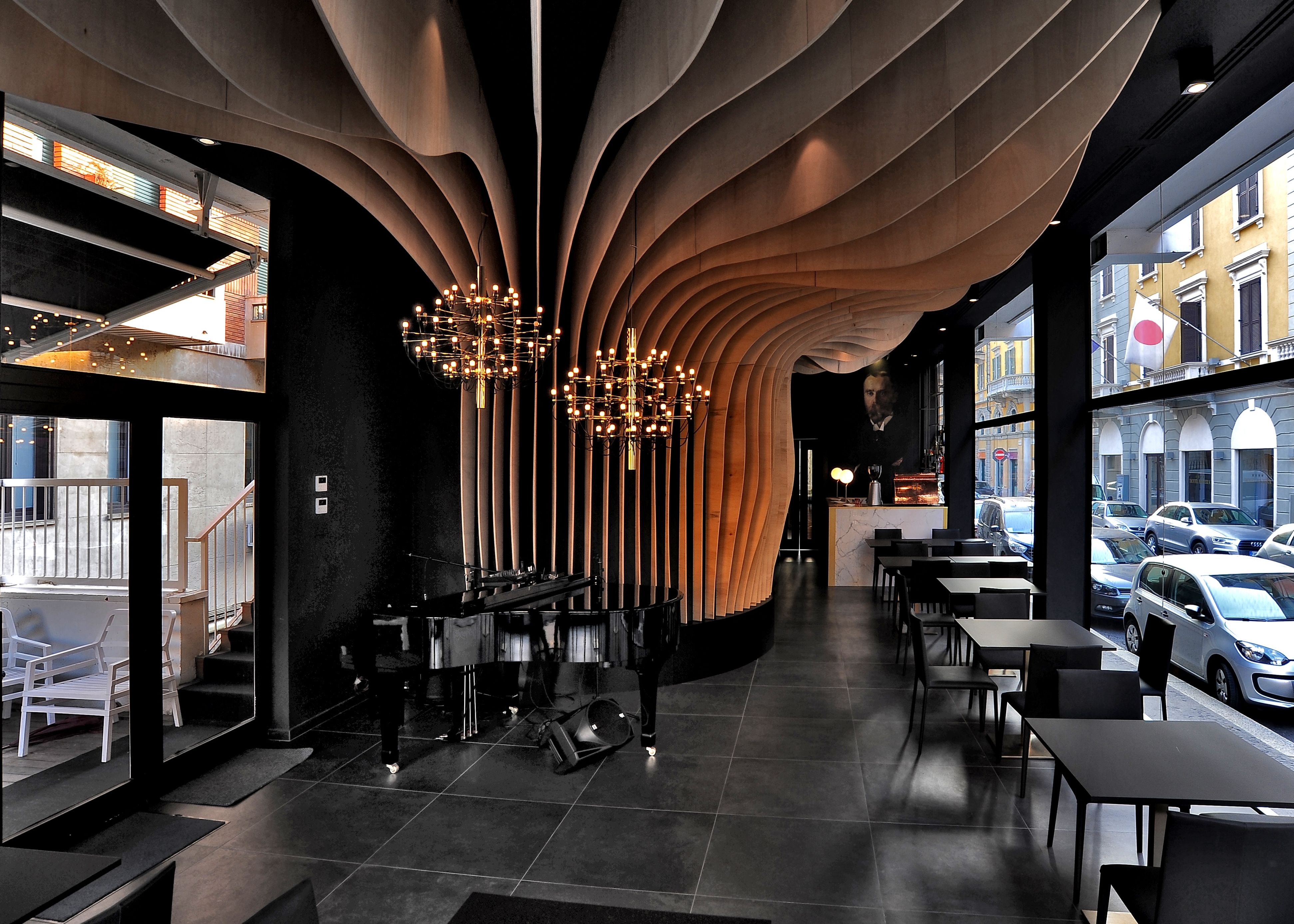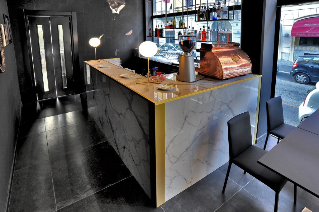 Ceramiche Keope firma una elegante collaborazione con il Bar Manuzio di Milano fornendo il rivestimento del raffinato bancone con l’originale collezione in grès porcellanato Elements Lux che riproduce con assoluta fedeltà il grafismo del marmo. Con le sue venature, la finitura Calacatta nel formato 120×240 cm, esprime un carattere deciso e soddisfa un’area di gusto minimalista e sofisticata.