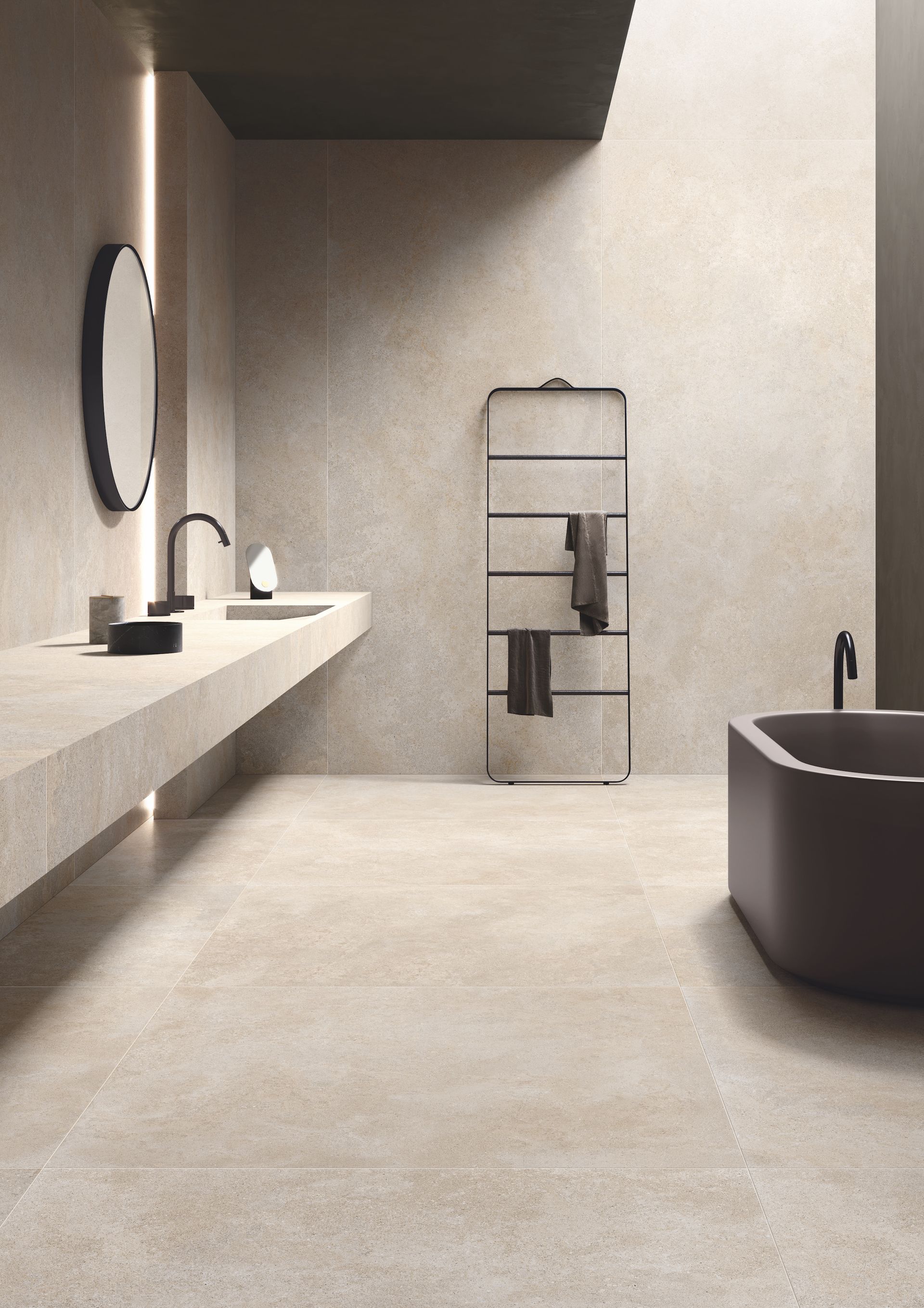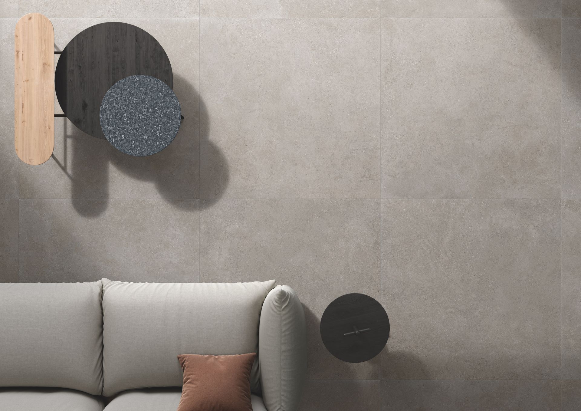 La nuova linea effetto pietra si presenta con una texture materica e una superficie morbida perfetta per ambienti sia interni sia esterni.