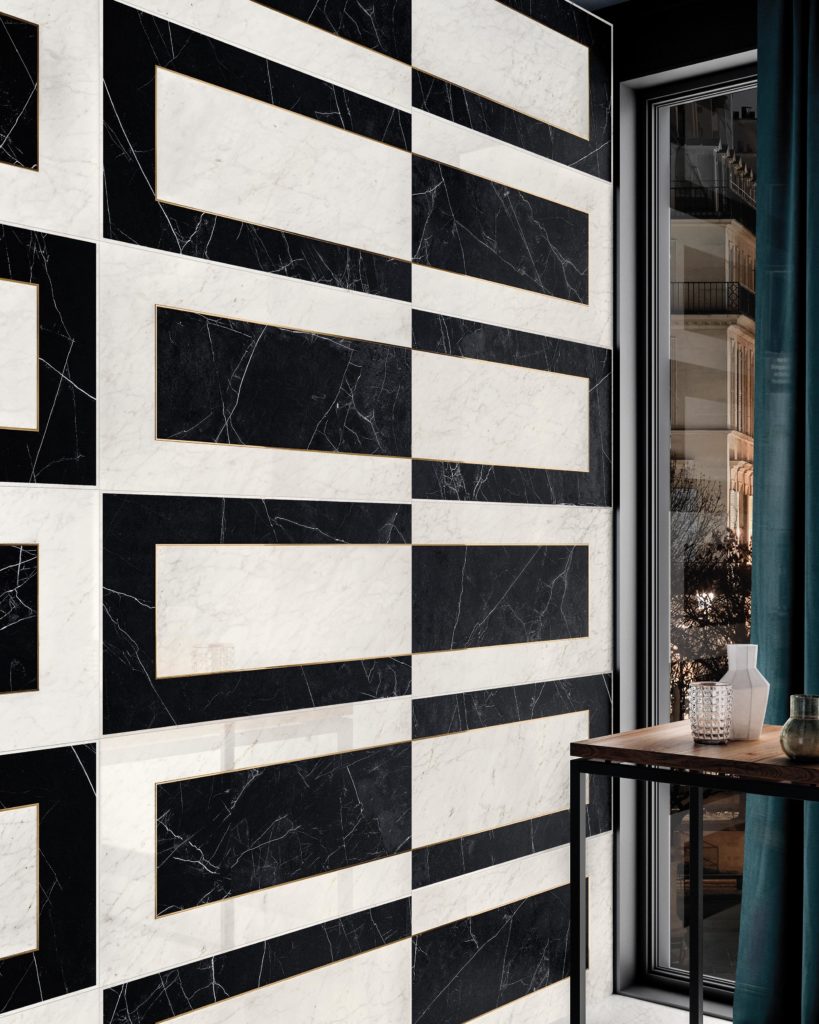 L’ultima collezione di piastrelle e lastre in gres Valentino Abbey Road di Ceramiche Piemme è un chiaro rimando alla famosa foto-icona dei Beatles, immortalati sull’omonima strada di Londra. Al di là dell’omaggio musicale, l’alternanza geometrica del marmo nero e bianco crea un effetto optical di grande impatto per dare personalità e forza alle pareti.