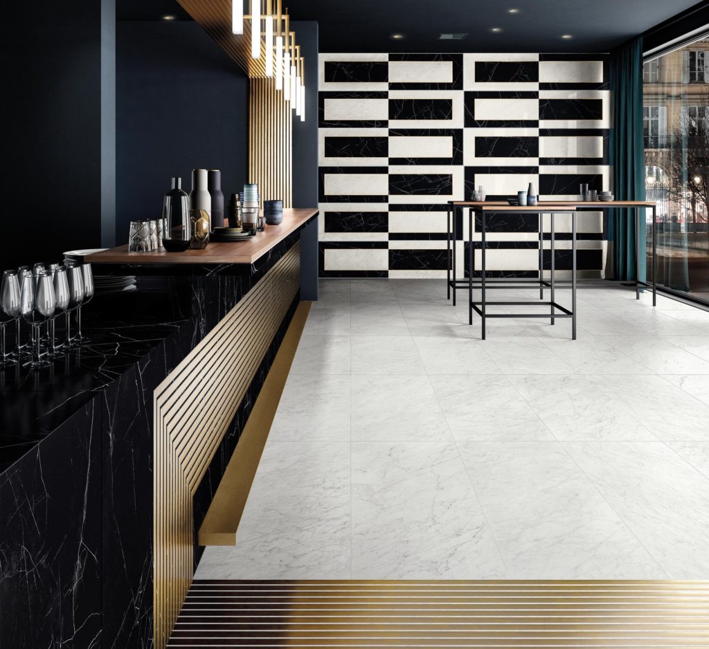 Le lastre 60X120 cm offrono peraltro diverse combinazioni di posa grazie a due versioni che invertono specularmente l’alternanza del bianco e del nero. Abbinate alle pavimentazioni in piastrelle Majestic – nelle finiture Apuanian White e Royal Nero – i rivestimenti Abbey Road permettono di progettare ambienti raffinati e moderni, anche in ambito pubblico. Disegnata dai ricercatori Valentino by Ceramiche Piemme, la collezione Majestic si ispira alle texture di marmi come Carrara, Grigio Verona, Nero Levanto, Onice, Nero Marquinia e Bianco Arabescato. Piastrelle e lastre di grandi dimensioni interpretano le venature dei marmi in otto tonalità con oltre 150 grafiche diverse per simulare l’eterogeneità dei materiali naturali. Ai numerosi formati e finiture si abbinano decorazioni, mosaici e rivestimenti in finissima pasta bianca.