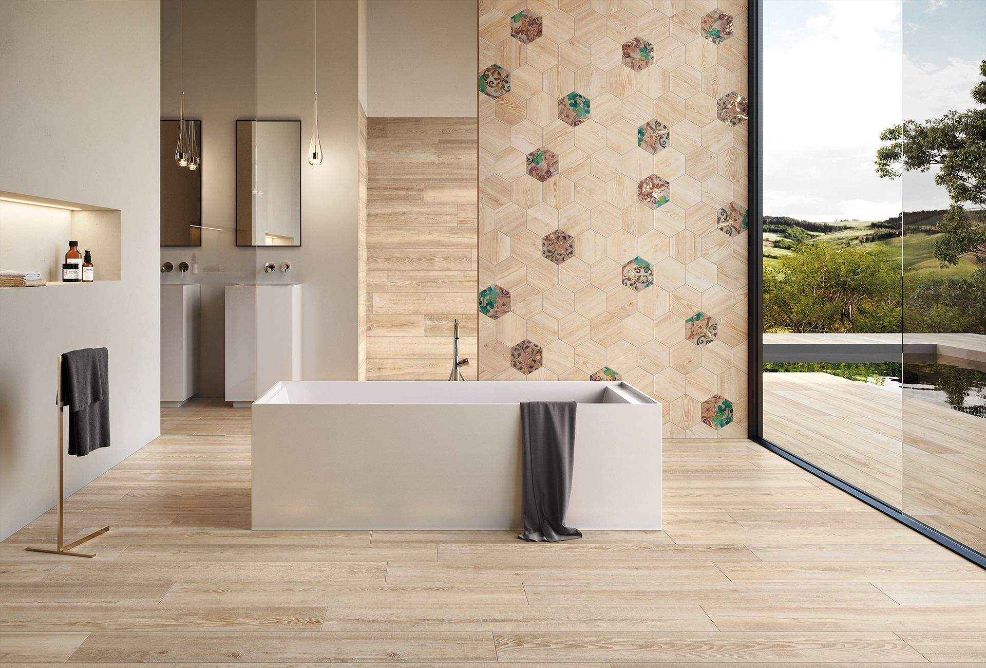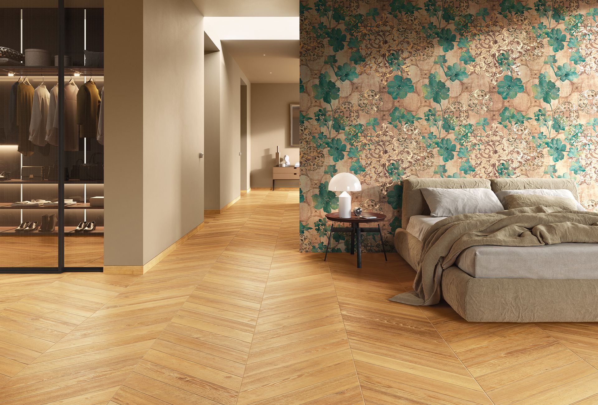 La collezione presenta cinque colori, di cui quattro toni caldi ispirati alle essenze naturali del legno e un tono freddo, che reinterpreta i legni decapati: Walnut, Clay, Oak, Gold e Grey nei formati classico formato 20x12020x120; Chevron 10×60; Decor 20×120; Esagona 19,8×22,8. Segue un ampio corredo di mosaici e decori, conferendo alla collezione Opera un’affascinante poliedricità. In linea con le tendenze di decorazione d’interni più attuali, la serie è completata dal decoro Damasco in formato 60×120. I decori: Mosaico Intarsio 9,5×39,4; Mosaico 3D 39,7×45,8; Esagona Decor 19,8×22,8; Damasco (set 2pz) 60×120.