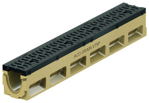 Dispositivo antirumore. Questo sistema in calcestruzzo polimerico, in grado di garantire stabilità e sicurezza anche per le classi di carico più elevate, presenta buone qualità idrauliche a cui si aggiungono alcune caratteristiche fondamentali quali la luce netta ridotta a 75 mm e un innovativo profilo a V, specificamente sviluppato da Aco per la canalizzazione in linea. Il tutto è completato dalla presenza di un dispositivo direttamente integrato nel corpo canale che riduce sensibilmente il disturbo acustico generato dal traffico. Lo speciale strato in gomma rinforzata presente tra il telaio e la griglia, unitamente alla griglia stessa, costituiscono un dispositivo anti-rumore intercambiabile, che contribuisce a proteggere il corpo canale garantendone la durata e l’efficacia nel tempo.