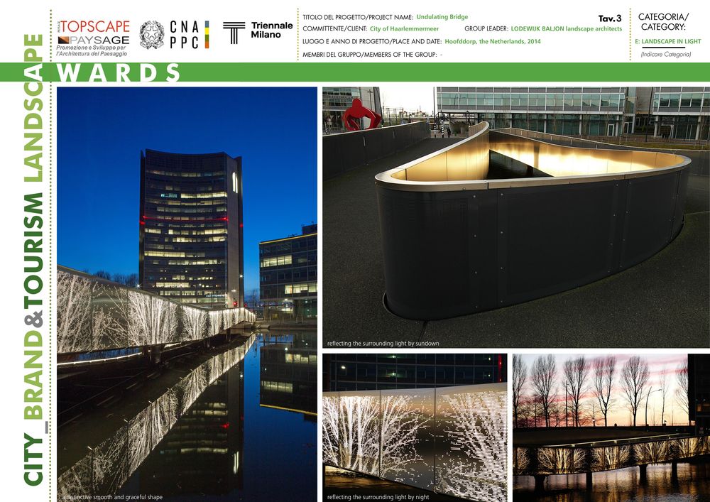 Proclamati i vincitori del Premio internazionale «City-Brand&Tourism Landscape» promosso dal Consiglio Nazionale degli Architetti, Pianificatori, Paesaggisti e Conservatori e da Paysage, Promozione e sviluppo per l’architettura del paesaggio, con il patrocinio della Triennale di Milano, e finalizzato a porre in luce best practices nell’ambito dei più diversi ambiti dell’architettura del paesaggio.