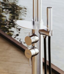 Libeccio è la colonna doccia di Claudio Papa il cui nome evocativo richiama venti impetuosi in contrasto con il suo design minimale ed elegante che promette di portare un vortice di innovazione nella sala da bagno e non solo.