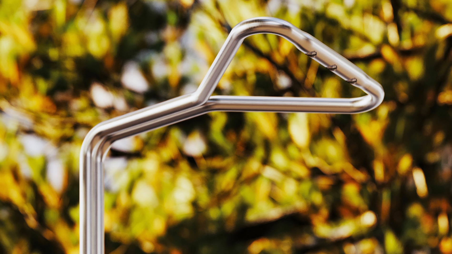 Un unico corpo centrale (di Ø 50 mm) si slancia verso l’alto (dimensioni H 2150 x L 334 x P 474 mm) per poi dividersi in due tubolari che si riuniscono nel punto di erogazione, evidenziandone il percorso e formando un triangolo che, nella cultura classica, era simbolo dell’acqua e dei suoi effetti benefici.