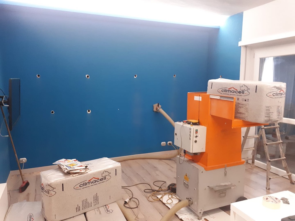 Climacell S ha una struttura fine con un tasso di polvere maggiore per ottimizzare l’allentamento e garantire l’uniformità con cui i fiocchi si distribuiscono e addensano nell’intercapedine riempiendo ogni fessura. Mentre la struttura del fiocco è duttile per inserirsi in ogni fessura, la polvere satura lo spazio fra le fibre garantendo una stabilità uniforme nella densità prevista dello strato coibentato all’interno. La sinergia fra allentamento e riaddensamento dei fiocchi di cellulosa permette prestazioni maggiori del prodotto per quanto riguarda la resistenza al flusso d’aria, ma anche la fonoassorbenza e l’elevato comfort estivo.