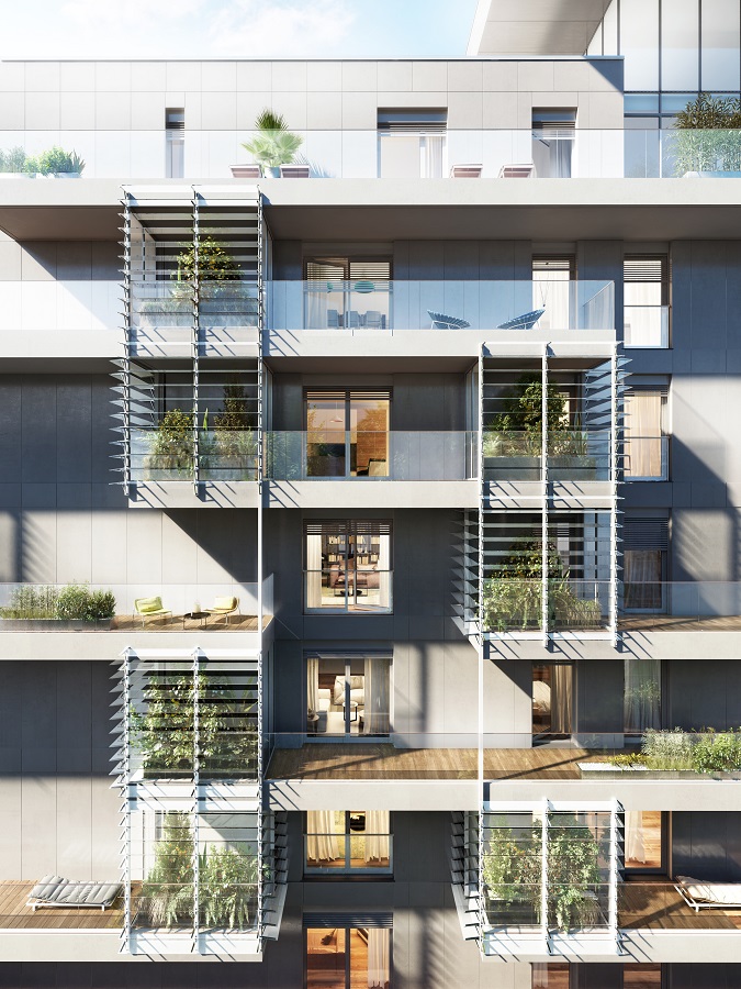 Le 95 unità offrono diverse soluzioni abitative su varie metrature e sono dotate di terrazze e serre, vero elemento caratterizzante dell’intero progetto.