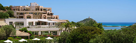 L’Hotel Baia sorge sulla cima della collina di Chia e gode di uno dei più bei panorami marini della Sardegna: dispone di 41 bungalow e 80 stanze forniti di ogni servizio e di una spiaggia raggiungibile tramite un sentiero di 60 gradini scavati sulla roccia.