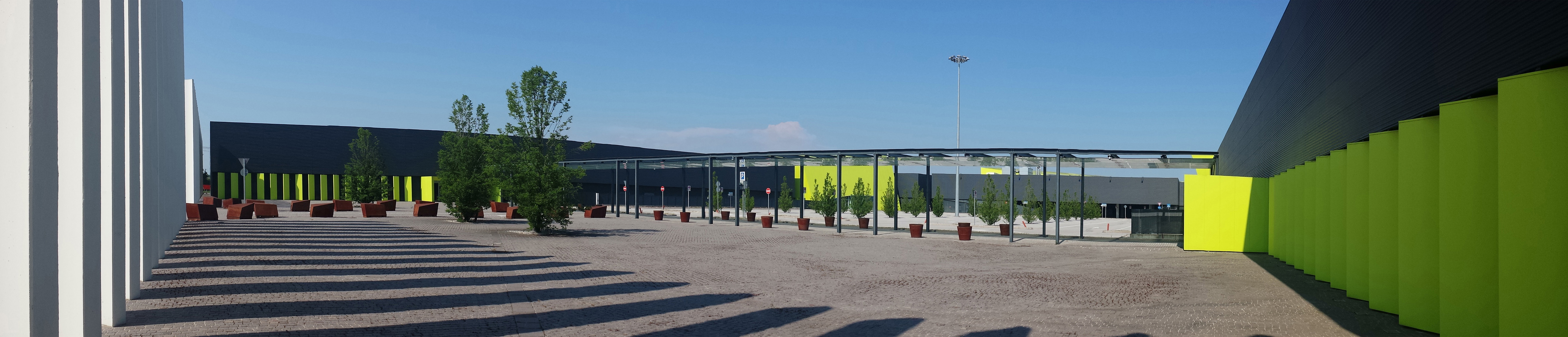 Progettato dal punto di vista architettonico dallo studio internazionale Chapman Taylor e dal punto di vista impiantistico dallo studio Climosfera di Villorba di Treviso, l’Arsenale è una rivoluzionaria struttura commerciale sviluppata su una superficie coperta di 25.000 mq con 1.700 posti auto a raso. L’Arsenale presenta una struttura moderna e di grande impatto visivo, grazie al gioco geometrico dei volumi e dei contrasti cromatici, all’utilizzo di materiali e soluzioni costruttive hi-tech. Il centro commerciale ospita un ipermercato, 50 piccole e medie superfici, e vari servizi. L’obiettivo del progetto è stato quello di garantire il massimo del comfort, indipendentemente dalle condizioni esterne, dall’affollamento dei locali, assicurando un’anima green, abbattendo le emissioni di CO2 e il consumo di energia, con bassi costi di esercizio e di primo investimento.