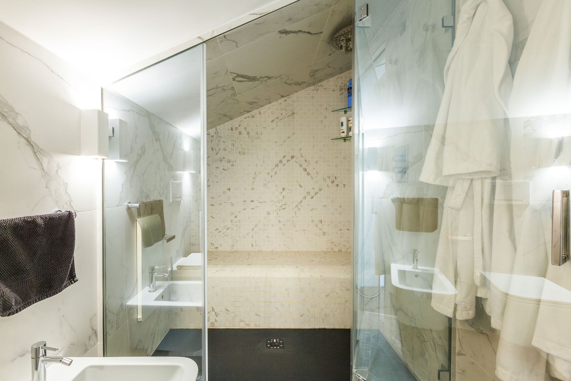 In particolare, i servizi a corredo della camera matrimoniale assicurano altresì un’esperienza di benessere vera e propria, da vivere direttamente nell’intimità della propria casa, come in una Spa, grazie alla presenza di un accogliente bagno turco.