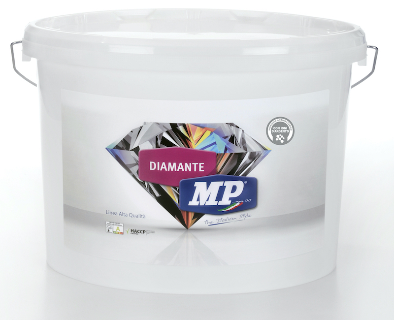 Smalto murale a base di resine acriliche emulsionate in fase acquosa, biossido di titanio e pigmenti inalterabili alla luce, Diamante, di Colorificio Mp, è certificato Hccp per la verniciatura di ambienti medico sanitari e ambienti con presenza di alimenti.
