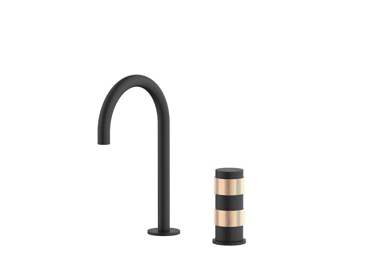 Disegnata da Pierattelli Architetture, questa collezione è caratterizzata da linee semplici e pulite, un corpo cilindrico in ottone con anelli ricavati dal pieno che, replicando il funzionamento delle ghiere di messa a fuoco dell’obiettivo della macchina fotografica, regolano l’erogazione di acqua calda e fredda.