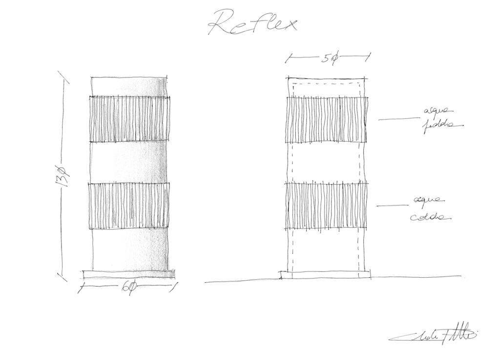 Lo studio fiorentino, che da anni si cimenta nella progettazione di arredi su misura, debutta nel mondo del prodotto industriale con un’azienda che da sempre coniuga design, sostenibilità e tecnologia. Insieme a IB Rubinetti, gli architetti hanno affrontato anche la sfida della sovrapposizione delle due erogazioni in un unico corpo indipendente: una delle principali peculiarità di Reflex, rispetto ad altri prodotti della stessa categoria.