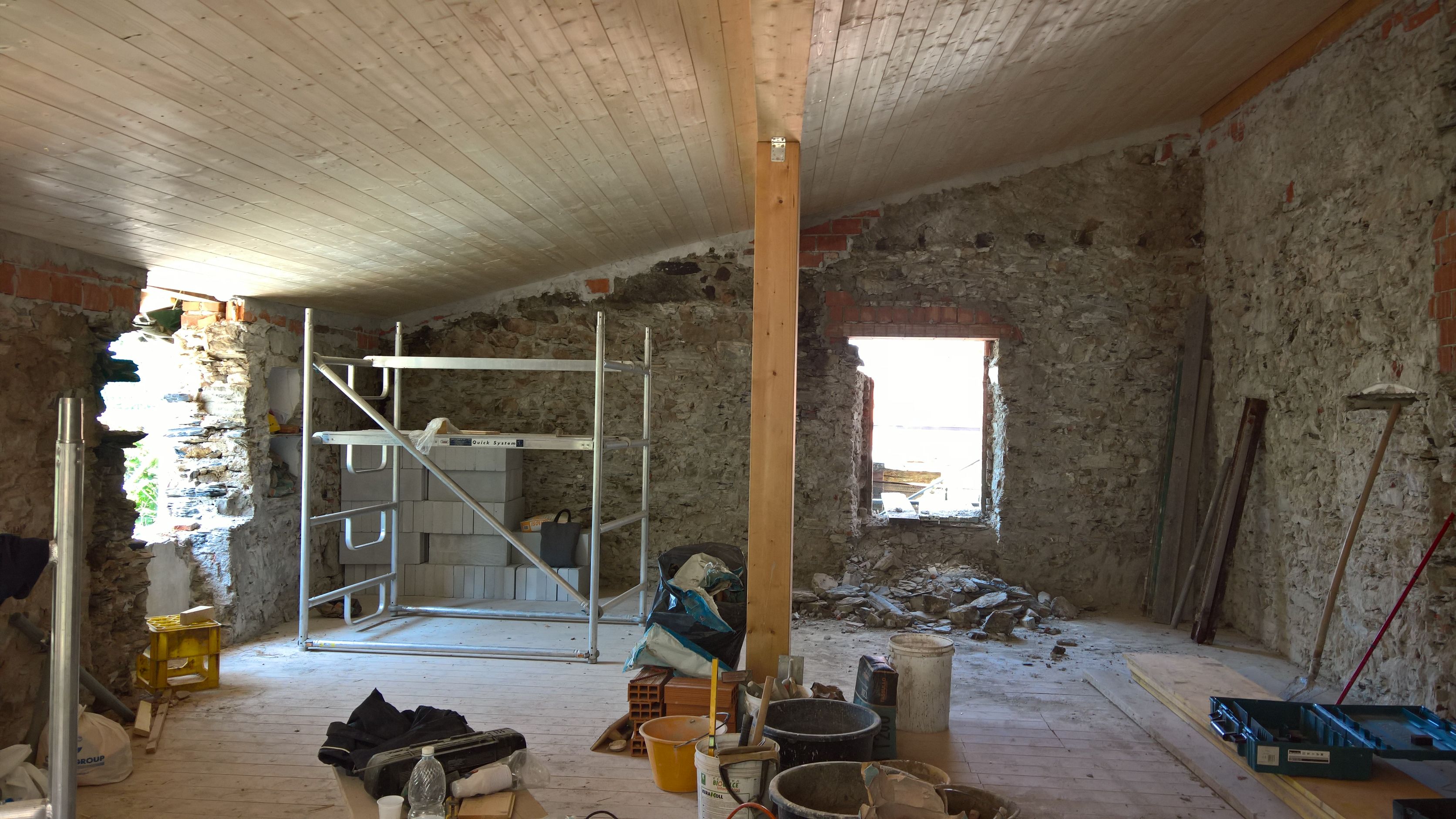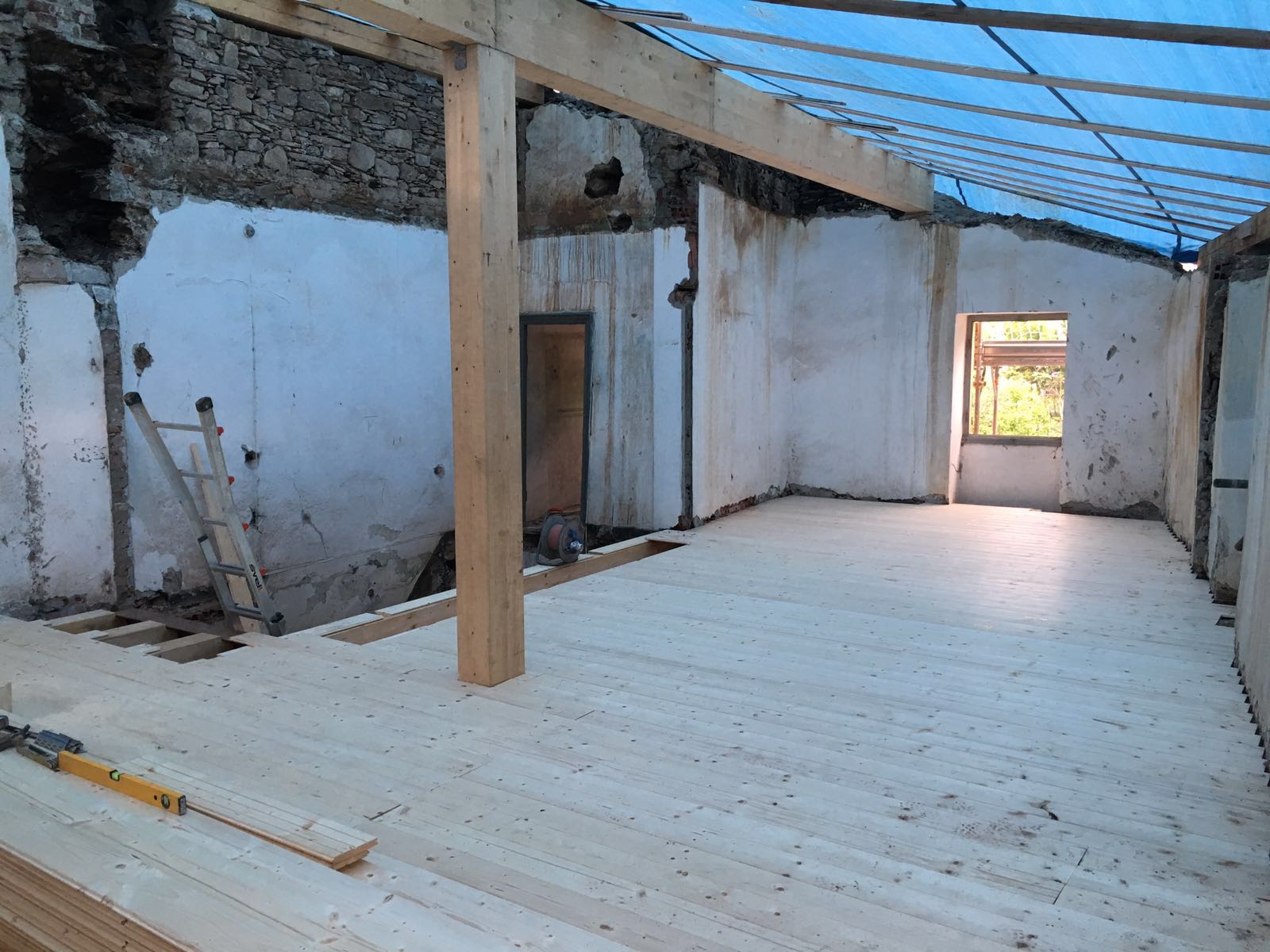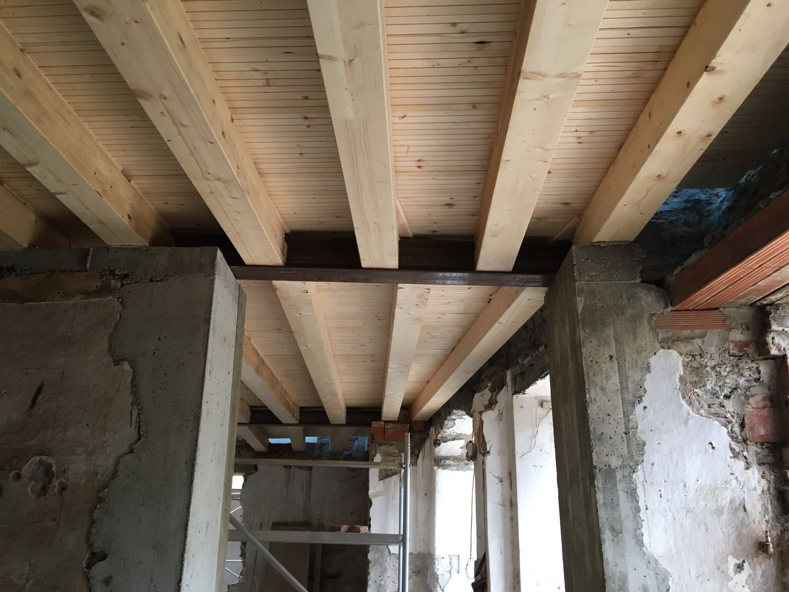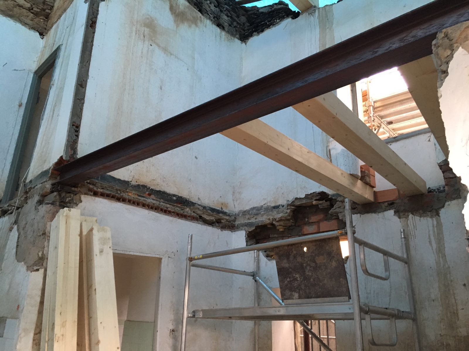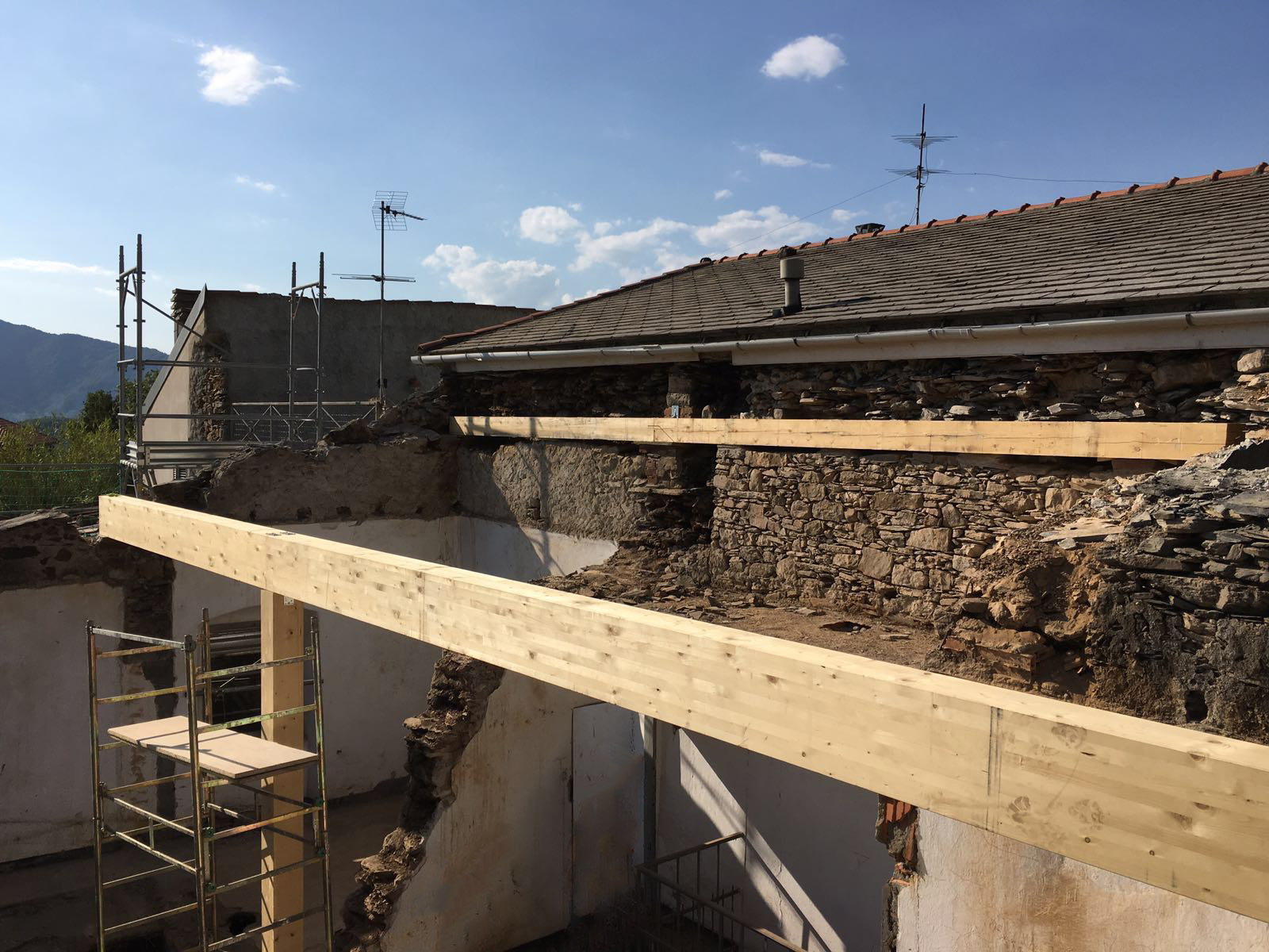 In un secondo momento sono state realizzate nuove porzioni di tramezze interne in muratura e sono stati puntellati e poi ricostruiti architravi e imbotti di tutte le aperture esistenti nella muratura originaria.