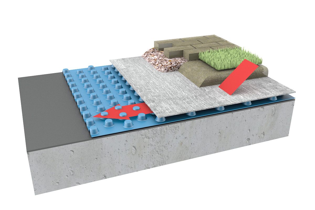 L’utilizzo di membrane alveolari drenanti gioca un ruolo chiave per la messa in sicurezza del costruito. La loro messa in opera permette di proteggere l’impermeabilizzazione dai danni meccanici (rinterro, cedimento differenziale), ridurre la compressione dello strato impermeabile impedendo la formazione di pressione idrostatica e, secondo i casi, convogliare l’acqua che si accumula verso un collettore periferico. Impediscono il contatto diretto terreno-muro evitando la formazione di umidità. L’applicazione può essere in verticale ma anche in orizzontale. Nei rain garden, insieme alla flora autoctona, contribuiscono all’assorbimento dell’acqua e il riciclo di quella in eccesso prevenendo il collasso della rete fognaria.