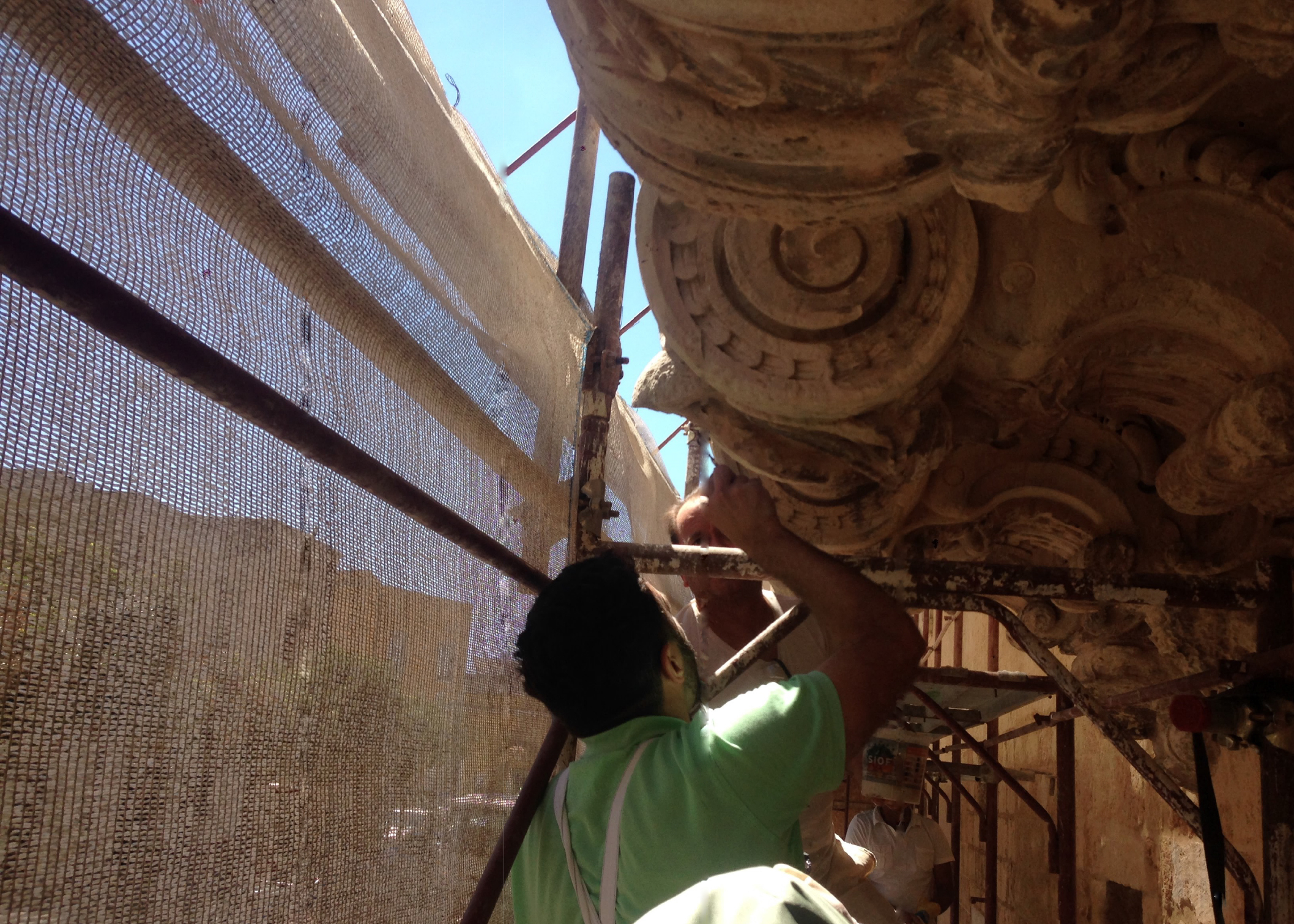 - pulitura delle superfici lapidee (pietra leccese) interessata da diffuso attacco biologico (licheni);
