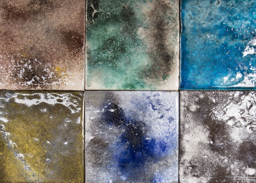 La lavorazione manuale, in secondo e terzo fuoco, la superficie del supporto e la ricerca di nuovi componenti, conferiscono alle mattonelle impareggiabili colori e sfumature che richiamano gli effetti cromatici dei cristalli e dei mosaici di Venezia.
