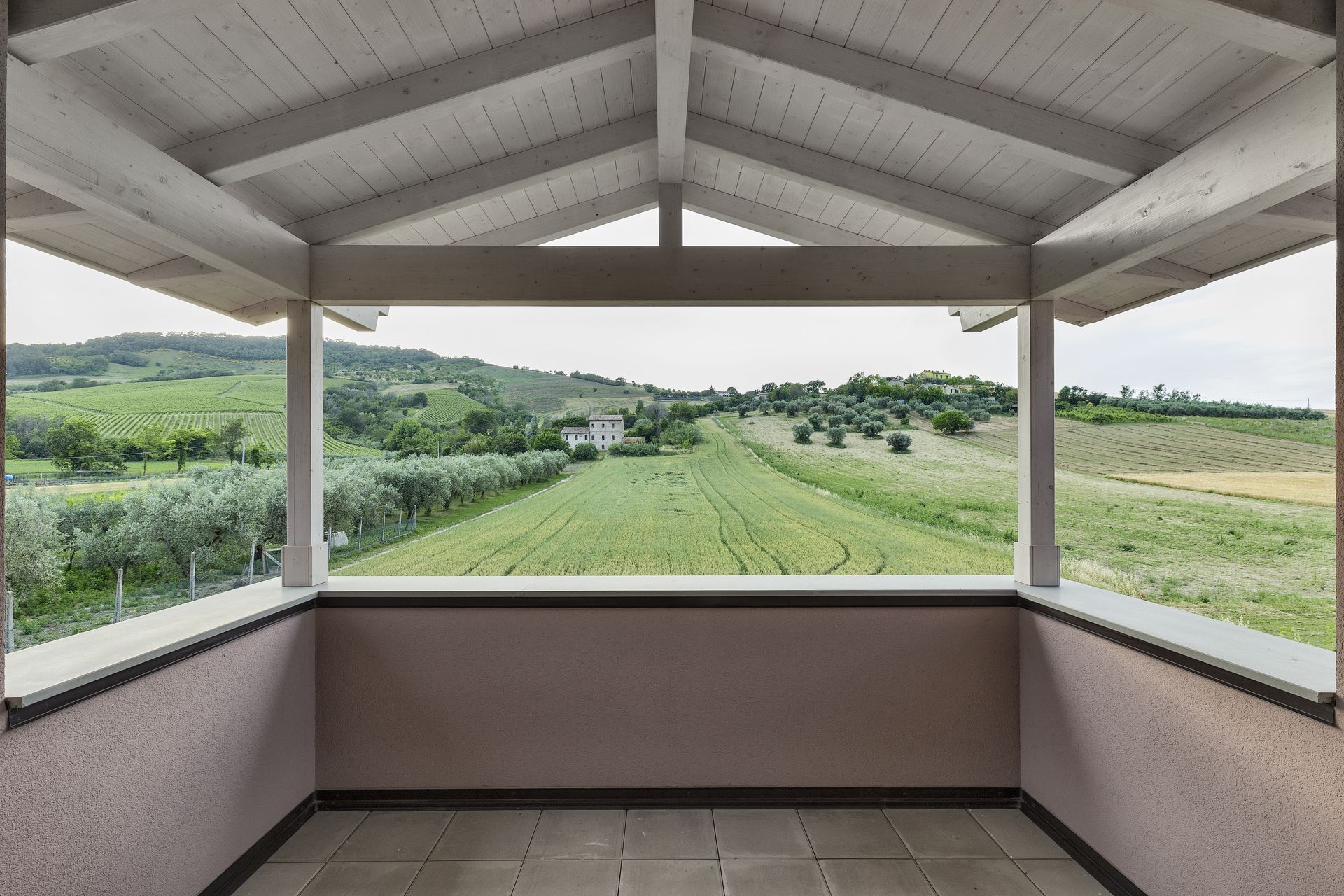 Anche il portico gioca un ruolo fondamentale perché, messo in comunicazione con il living dall’ampia vetrata, durante la bella stagione diventa l’estensione naturale degli ambienti interni fino al giardino. La grande terrazza coperta diventa un punto di osservazione del paesaggio collinare circostante.