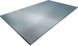 - Knauf Silent Pad R – Composto da Silent Pad 2 mm ad alta densità accoppiato sul lato superiore con un filmalluminato e goffrato con funzione radiante e sul lato inferiore a una speciale fibra agugliata prodotta su specifiche calibrate per un migliore abbattimento acustico di spessore 3 mm. È il prodotto più adatto per le applicazioni con sistema di riscaldamento o raffreddamento a pavimento. Lo strato superiore alluminato riflettente favorisce l’efficienza energetica bloccando le dispersioni di calore verso il basso e lo rende efficace in applicazioni a basso spessore con pannelli termici sottili.