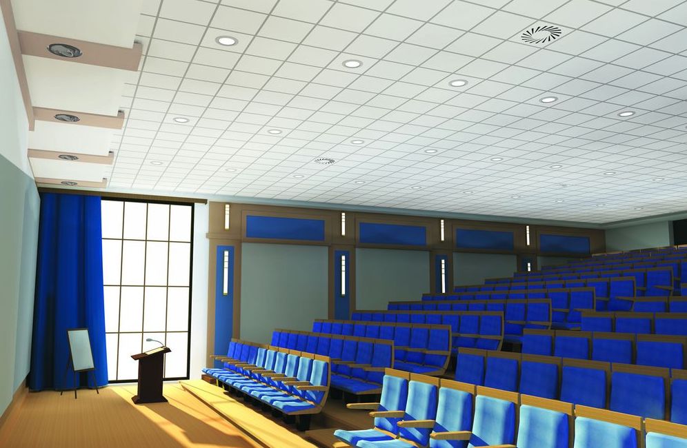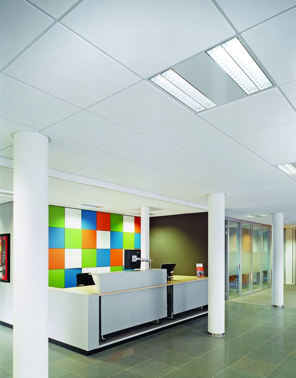 In presenza, infatti, di finiture fortemente riverberanti, come ad esempio i pavimenti in gres, in marmo o in ceramica, è importante selezionare un controsoffitto con un alto potere fonoassorbente (αw), affinchè il tempo di riverberazione diminuisca a garanzia di una migliore intelligibilità della parola. Per il benessere delle persone, il tempo di riverbero dovrebbe essere al di sotto del secondo.
