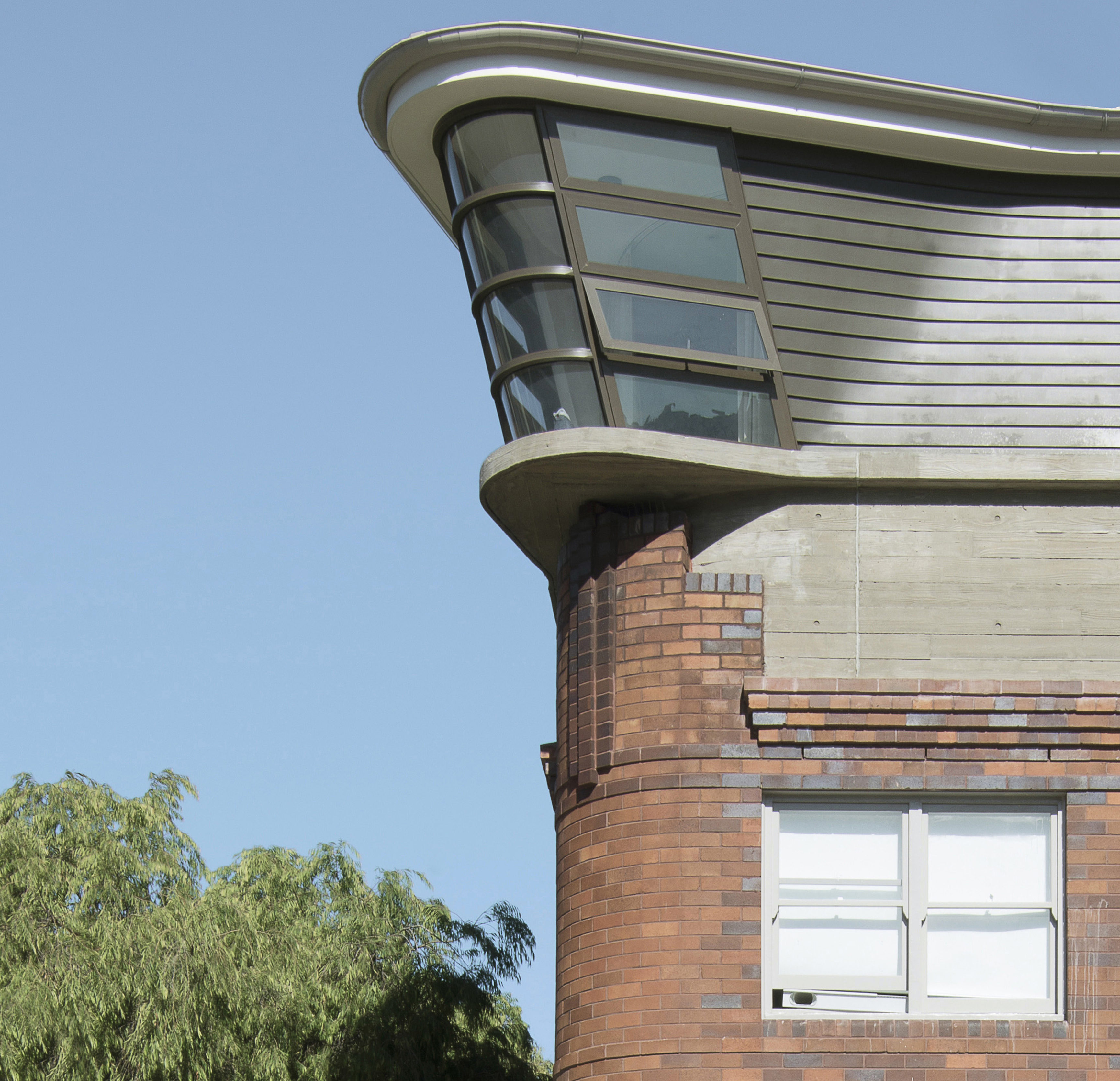 L’elemento che contraddistingue l’intervento è il bow window angolare in corrispondenza dell’incrocio, che si protende a sbalzo verso la strada con una forma arrotondata, evocando la tradizione dell’architettura navale a cui è legata la località balneare di Bondi Beach.