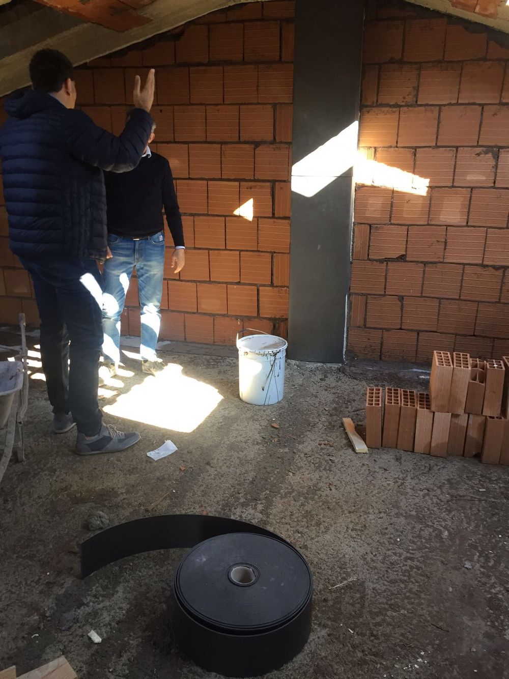 A completamento dell’isolamento acustico delle pareti è stata applicata Isolmant Fascia Tagliamuro per desolidarizzare le partizioni verticali evitando il fenomeno di connessione rigida fra i piani dell’edificio. Grazie alla sua densità calibrata, Isolmant Fascia Tagliamuro garantisce da un lato la necessaria resistenza meccanica (onde evitare cavillature nei tramezzi), e dall’altro l’effetto molla anti-vibrante richiesto per escludere il ponte acustico.