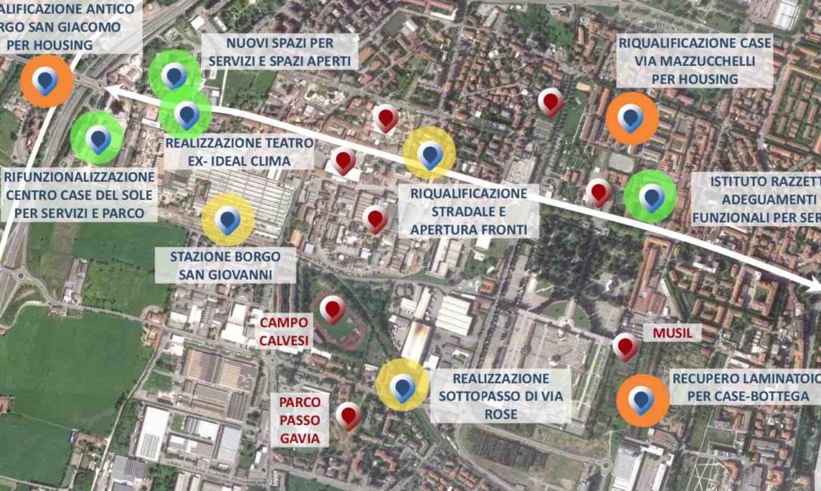 Si sta sviluppando un progetto modulare, costruito su tre livelli di intervento: infrastrutturale e urbanistico (che include gli interventi sulla mobilità), socio-culturale (con un’attenzione a nuove formule di abitazione e di formule che uniscano l’housing agli spazi di lavoro per imprese giovani e creative e per laboratori di artigianato).