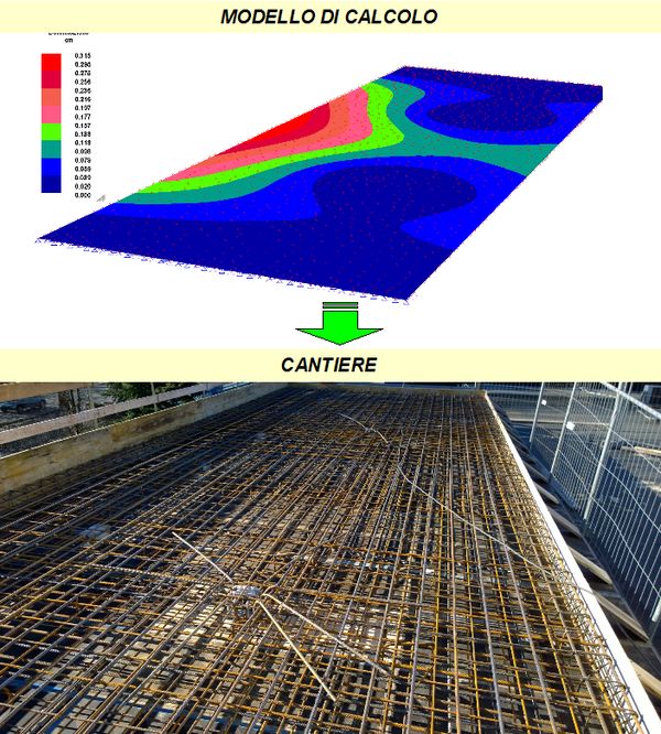 Esempio di modello di calcolo per una soletta in c.a. e effettiva realizzazione della stessa (foto di Amv srl e Casagrande Costruzioni Edili srl).