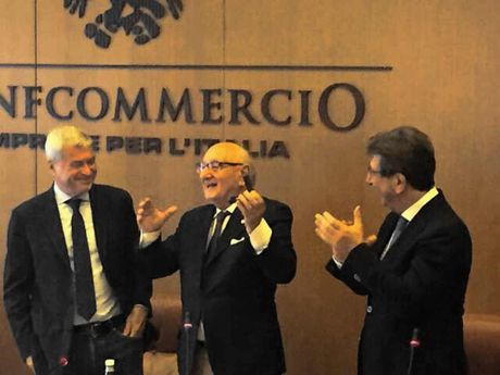 Giuseppe Freri, presidente di Federcomated ha premiato, con una medaglia d’oro, Carlo Sangalli, presidente di Confcommercio Imprese per l’Italia per i 70 anni della confederazione. Freri ha, invece, ricevuto la medaglia d’argento per il suo contributo apportato all’associazione.