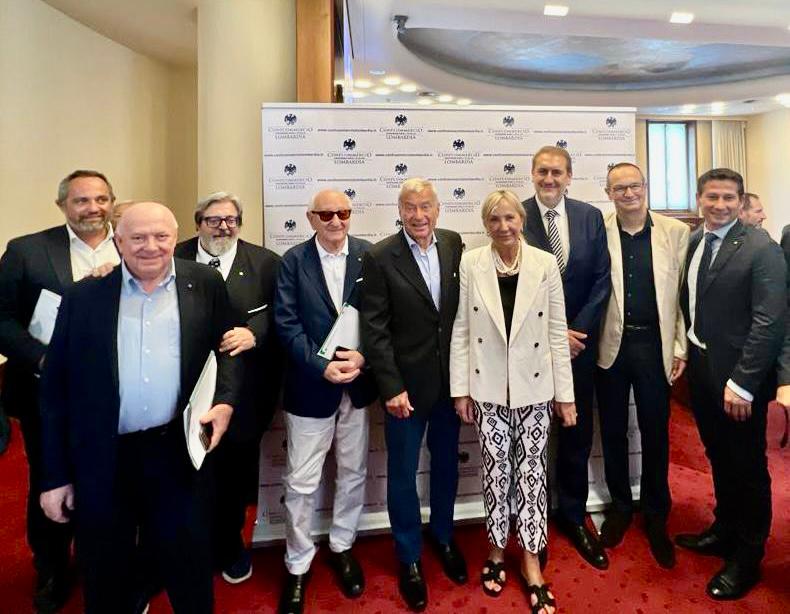 Da sinistra, il Presidente di Cremona Andrea Badioni, il Presidente di Mantova, Ercole Montanari, il Presidente di Como Giovanni Ciceri, il Vice Presidente Giuseppe Freri, il Presidente Carlo Snagalli, la Presidente di Sondrio Loretta Credaro, il Presidente di Brescia e Vice Presidente Vicario Carlo Massoletti, il Presidente di Bergamo Giovanni Zambonelli e il Presidente di Varese Rudy Collini (foto Confcommercio)