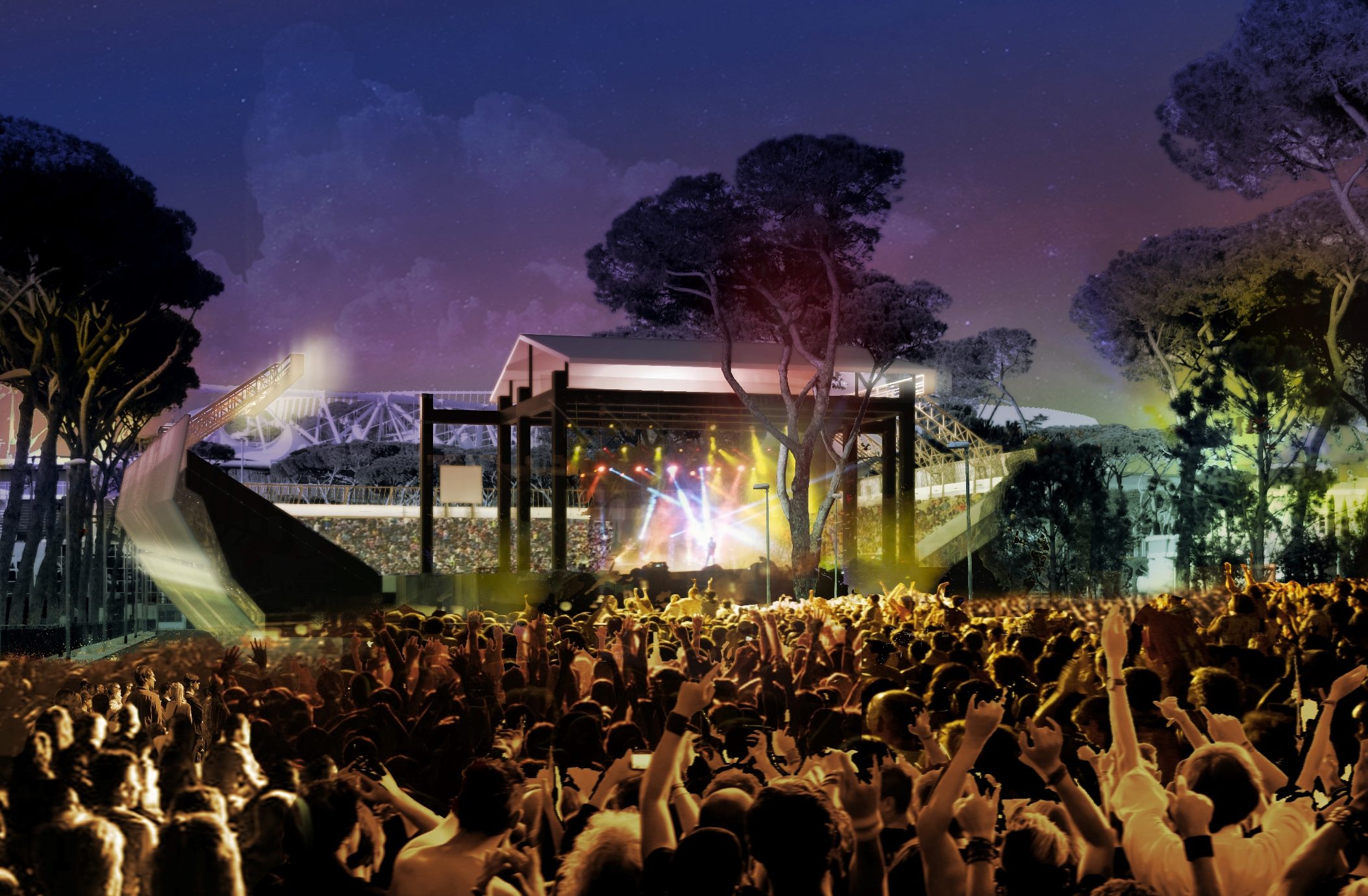 Il nuovo progetto TFS X.0 (Temporary Flexible Stadium X.0) a Roma è una struttura polivalente di ultima generazione, semi-temporanea con una capacità di circa 7.000 posti, un palcoscenico per eventi sortivi e di eventi musicali di portata internazionale nel periodo estivo.