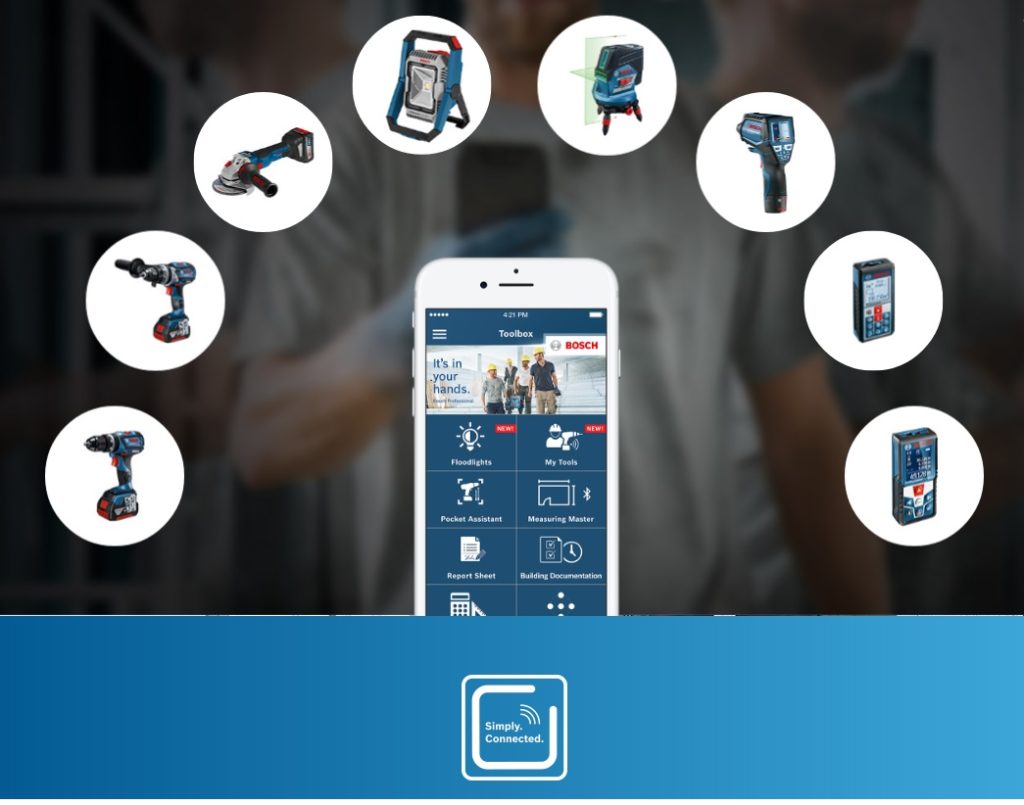Bosch amplia il Connectivity System dei propri utensili professionali per prestazioni e risultati migliori. Tramite l’app Bosch Toolbox si può avere maggiore livello di informazioni sullo stato dell’utensile e sulla sua manutenzione. Ampliata la gamma di utensili connessi con l’introduzione dell’avvitatore «FlexiClick» e del distanziometro laser integrato.