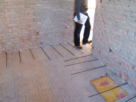I solai sono stati rinforzati con un getto in calcestruzzo alleggerito di spessore 6 cme sono stati inseriti i nuovi impianti idraulici ed elettrici nel successivo strato di spessore 10 cm e successivo strato per l’inserimento dell’impianto di riscaldamento a pavimento.