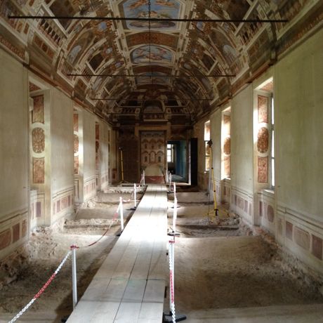 Il rinforzo è previsto anche all’estradosso degli arconi principali (sempre con sistema X Mesh c10); la realizzazione di cordolatura Frcm con il sistema Ruredil X-Mesh c10 e complementare cordolatura alle imposte delle volte/archi con malta pozzolanica fibrorinforzata Rurewall Pva-TX coadiuvata da una serie di “fiorettature” di collegamento imposta arco-piedritti con fiocchi in carbonio Ruredil X-joint inghisati con malta pozzolanica di inghisaggio Ruredil X-joint Inject; iniezioni con boiacca pozzolanica Rurewall B1 per i maschi murari affetti da carenze nei confronti dei carichi verticali; la realizzazione di “controarchi” estradossali con malta pozzolanica Rurewall PVA-TX in alcune sale dove è previsto un sensibile aumento dei carichi accidentali rispetto alle condizioni originarie di utilizzo.