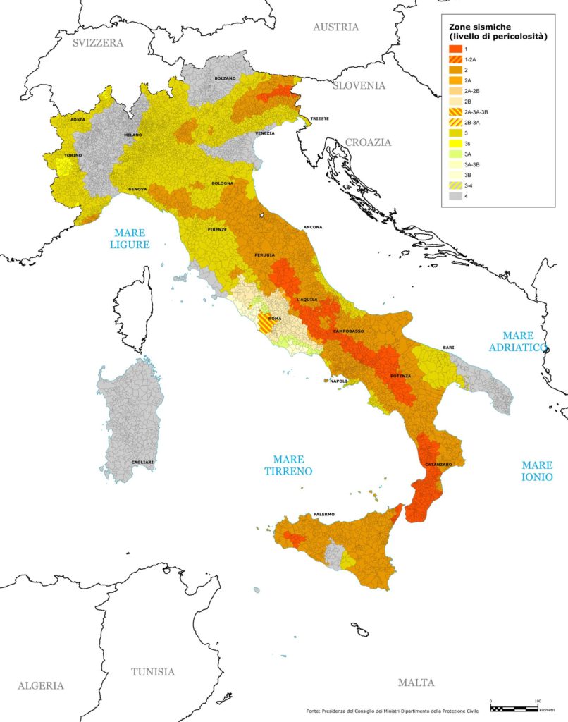 Classificazione sismica in Italia. Fonte: Presidenza del Consiglio dei Ministri Dipartimento della Protezione Civile.